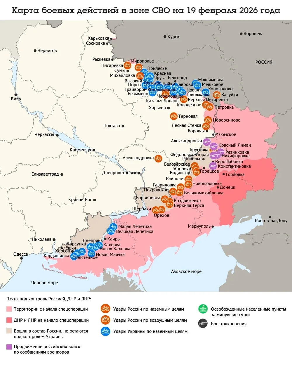 Карта боевых действий в зоне СВО на 20 февраля