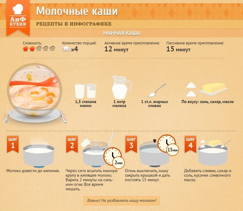 Молочная каша – одно из самых популярных утренних блюд. Готовятся каши довольно просто, но у каждой есть свои маленькие секреты приготовления, например, пшено нужно тщательно промыть и обдать кипятком, а манку – просеять сквозь сито, засыпая с кастрюлю, чтобы не было комочков.
