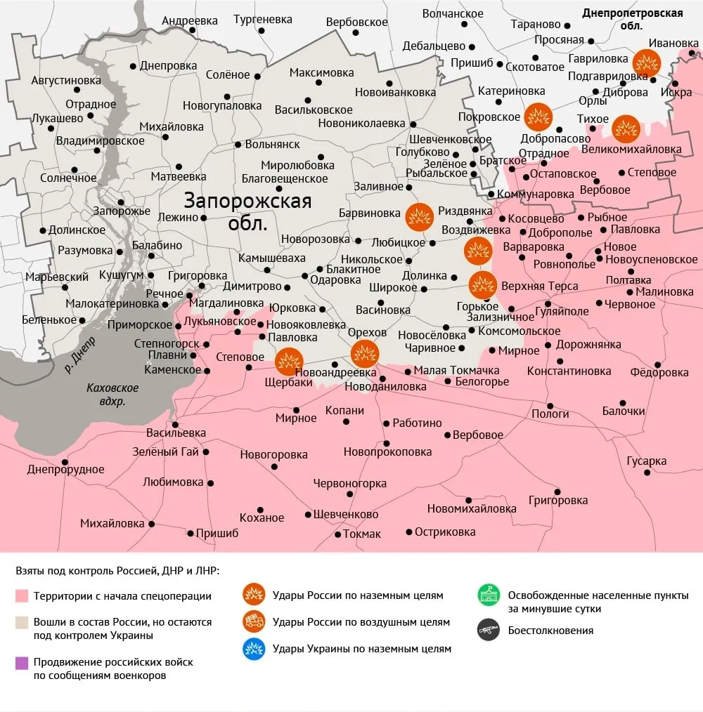 ▪️ На северском участке российские бойцы продвигаются в Никифоровке. На гуляйпольском направлении идут бои на рубеже Зализничное — Терноватая. На красноармейском фронте продолжаются столкновения в Гришино и на Добропольском выступе.