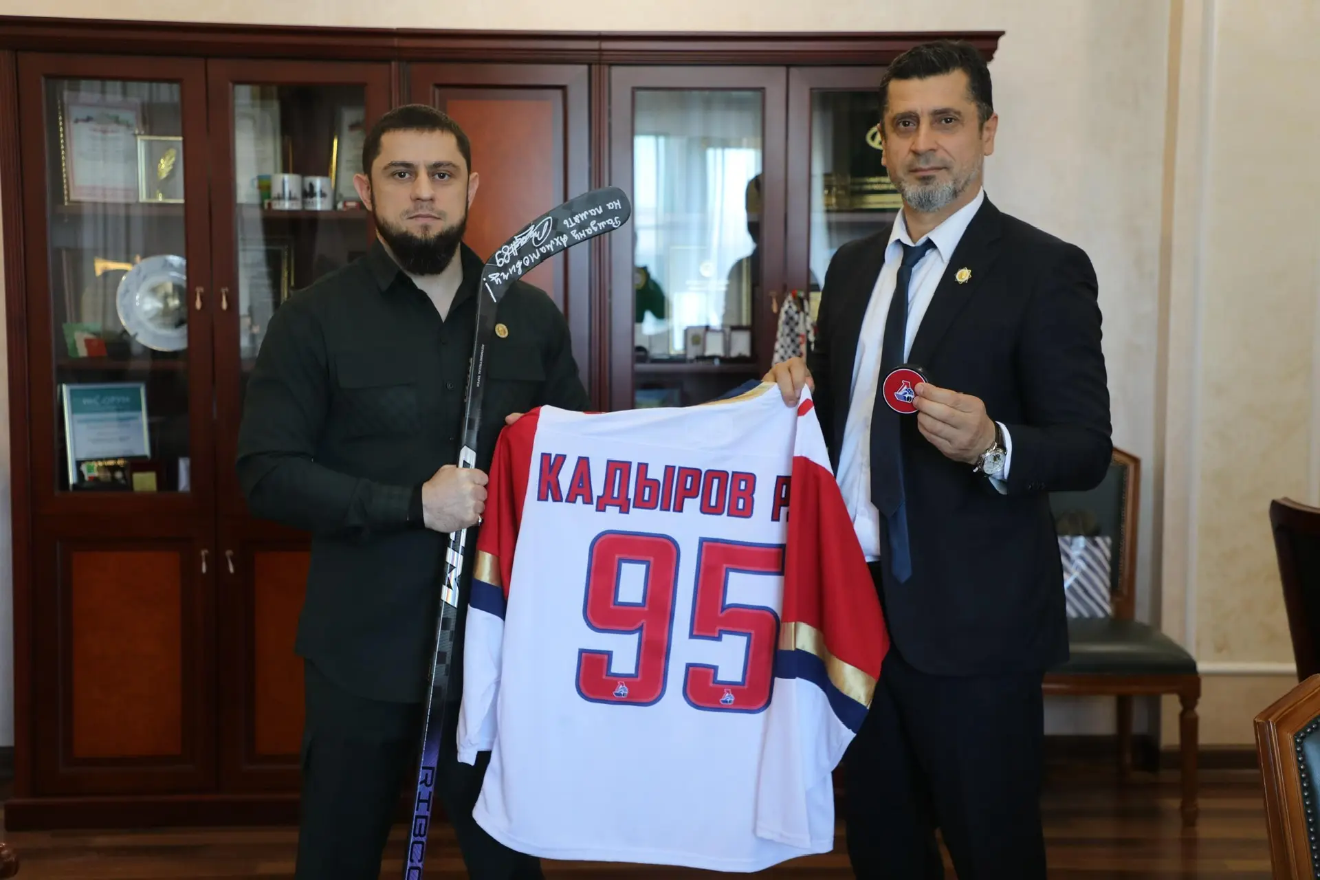 Также было выражено признание высокого уровня уважения, которым пользуется Глава ЧР, Герой России, мой дорогой БРАТ Рамзан Ахматович Кадыров среди жителей различных субъектов РФ благодаря своей конструктивной позиции, открытости к диалогу и готовности к сотрудничеству. В знак признания заслуг и тесных дружеских связей была вручена символическая благодарность в форме подарка — комплекта хоккейной экипировки от известного российского спортивного клуба «Локомотив» г. Ярославля, адресованного лично Рамзану Ахматовичу.