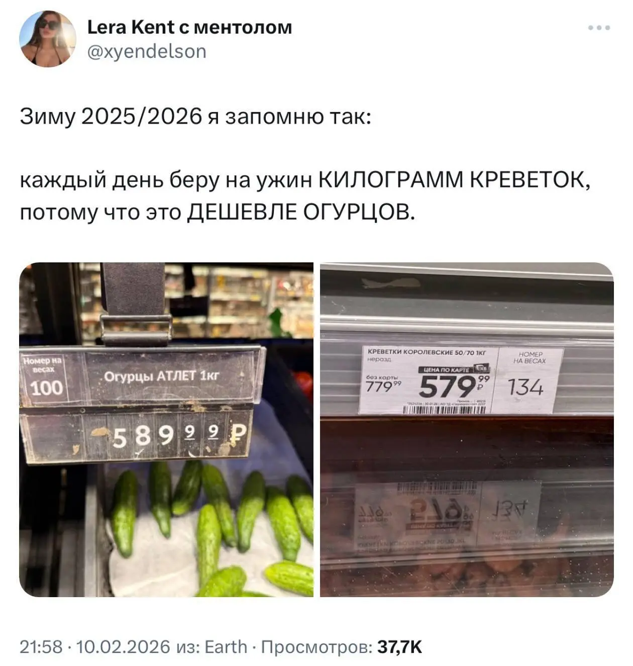 🫣 (https://t.me/+fEvrII0otKY2YTdi) Королевские креветки в магазинах стали дешевле обычных огурцов