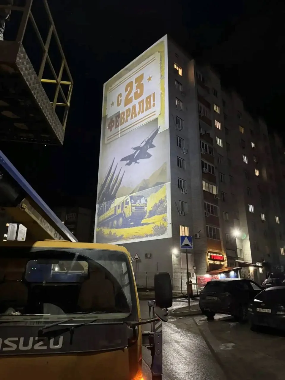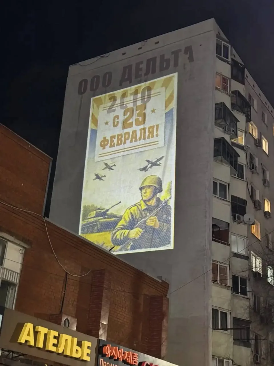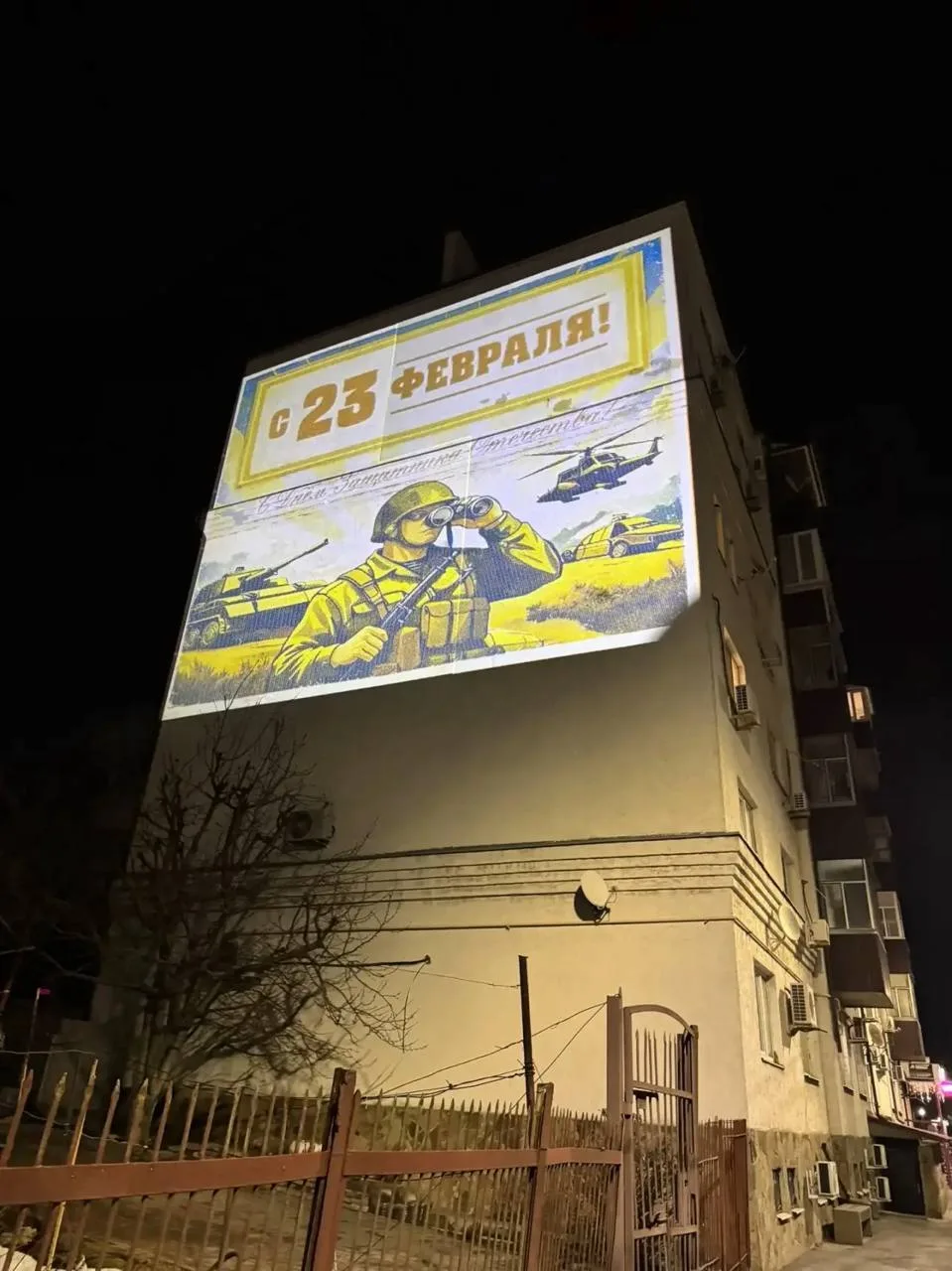 🌟💥В городе Аксае ко Дню защитника Отечества появились новые изображения ночных проекторов.