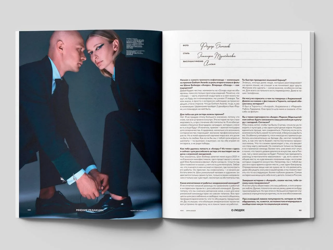 Хочу вспомнить первую кавер-стори «МНЕНИЕ РЕДАКЦИИ*» — у нас будет еще много обложек, но первая, безусловно, останется особенной. Я очень благодарен Юре, что он поверил в нас еще тогда!