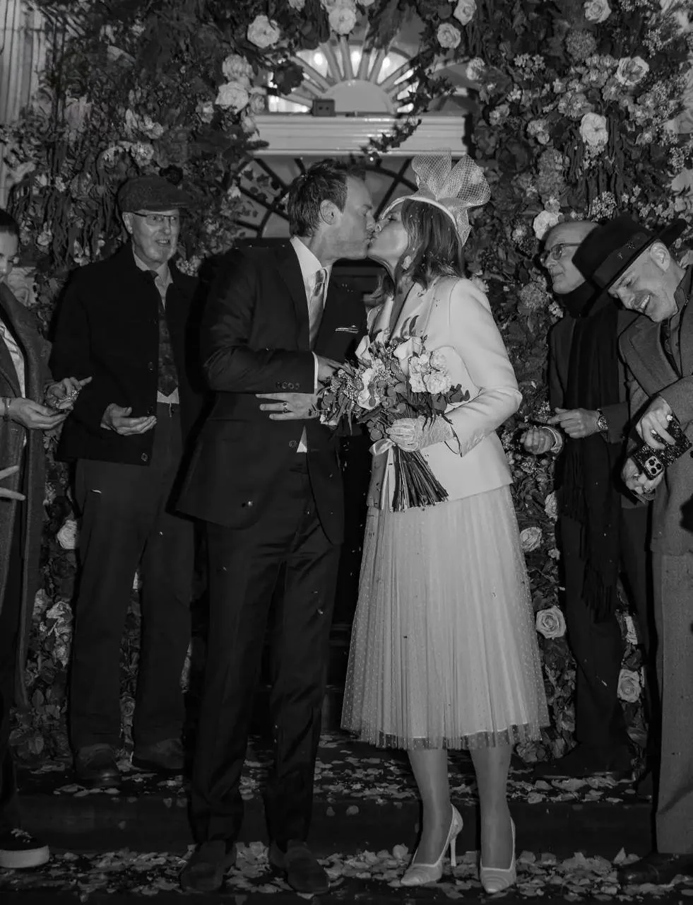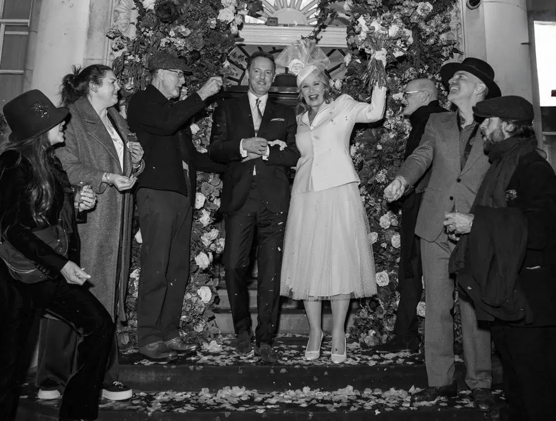 Церемония состоялась 4 декабря в присутствии всего 12 гостей. Невеста в костюме Dior, жених — от Richard James.