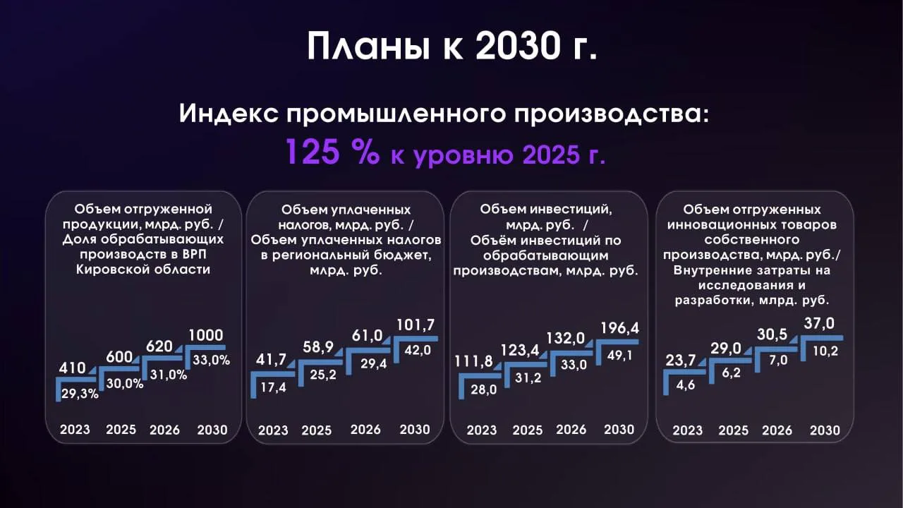 Вопрос стал центральным на утреннем оперативном совещании. Промышленность региона демонстрирует устойчивый рост. Объём отгруженной продукции по итогам прошлого года достиг 600 миллиардов рублей — это в 2 раза больше, чем в 2022 году. Инвестиции целенаправленно идут в ключевые для технологического лидерства отрасли. Доля машиностроения в них вырастет с 39% до 55% к 2030 году. Это прямой ответ на задачу технологического суверенитета, поставленную Президентом России Владимиром Путиным. Предприятия Кировской области включились в реализацию почти всех нацпроектов по обеспечению технологического лидерства — от новых материалов и беспилотников до фармацевтики и биоэкономики. Общий объём инвестиций оценивается в десятки миллиардов рублей. Ряд предприятий региона отмечаются на федеральном уровне как эффективные и перспективные в стране. Сегодня договорились, что создадим Совет по научно-технологическому развитию области под моим председательством. Создаем промышленные кластеры — 4 с прошлого года уже работают. В этом году к ним добавим еще 2 — по биотехнологиям и пищевой промышленности. Технологическое лидерство невозможно без наших вузов. Точкой сопряжения высших учебных заведений и технологических партнеров станет кампус. Наша амбициозная, но достижимая цель к 2030 году — 1 триллион рублей отгрузки продукции по обрабатывающим отраслям.