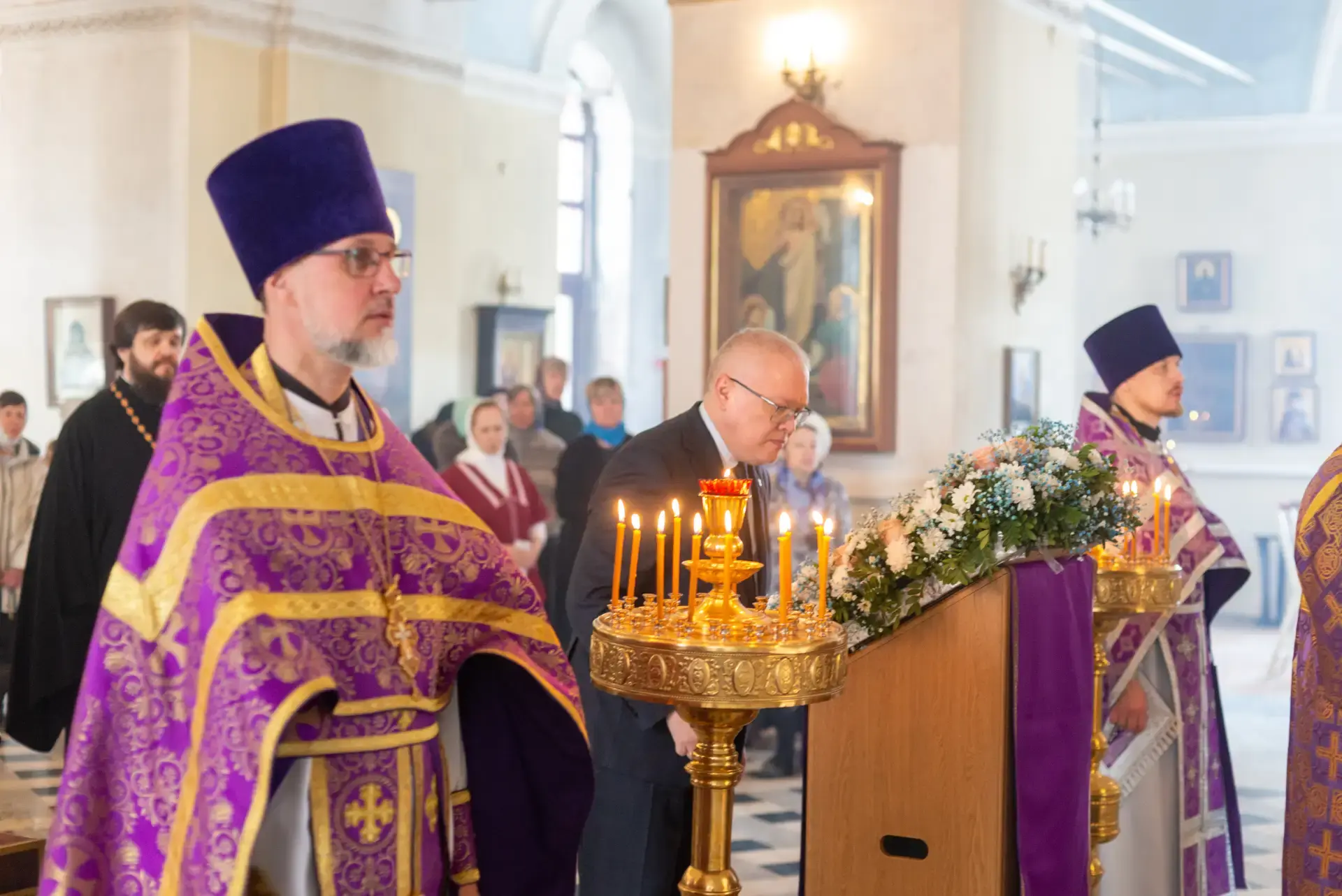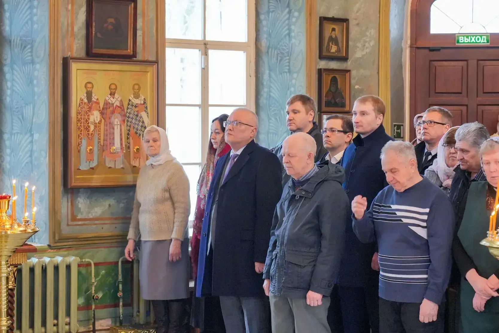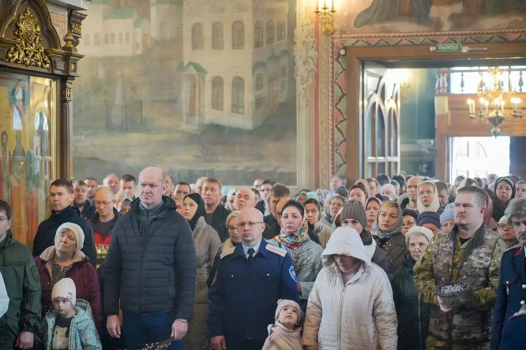 Вместе с прихожанами помолился о благополучии нашей земли в Спасском соборе на торжественном молебне в честь праздника Феодоровской иконы Божией Матери — заступницы нашего государства.