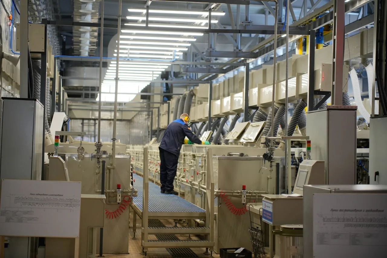 Благодаря ему на смену устаревшему оборудованию 60-х годов прошлого века пришли современные автоматизированные линии. Основные уже заработали на полную мощность. Они выполняют более 20 видов покрытий, включая редкое — палладием.