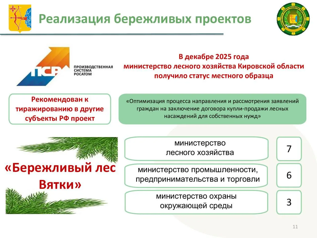 Уделяем развитию лесной отрасли приоритетное внимание. Наши предложения находят поддержку на федеральном уровне. Стали инициаторами изменений в Лесной кодекс по вопросу проведения закрытых лесных аукционов. В прошлом году провели в Кирове Совет по вопросам развития лесного комплекса при Совете Федерации. Утвердили программу — «Бережливый лес Вятки». В ней 16 проектов, которые охватывают разные сферы — от первоначального лесоустройства и межевания участков до автоматизации и роботизации, поддержки экспорта. Кировская область сохранила позицию 6-го региона в стране по объёму заготовки. Особое внимание — сохранению и восстановлению леса. В рамках нацпроекта «Экологическое благополучие» мы выполнили план по лесовосстановлению на 100%. Ведётся большая работа по защите от пожаров: используются камеры с искусственным интеллектом, беспилотники, авиапатрулирование. В результате удалось стабилизировать лесопожарную обстановку. Входим в число лидеров по цифровизации отрасли. Сегодня лесная отрасль Кировской области — это современный и технологичный комплекс. Продолжим сохранять и приумножать ресурсы, делая отрасль прозрачной и эффективной.