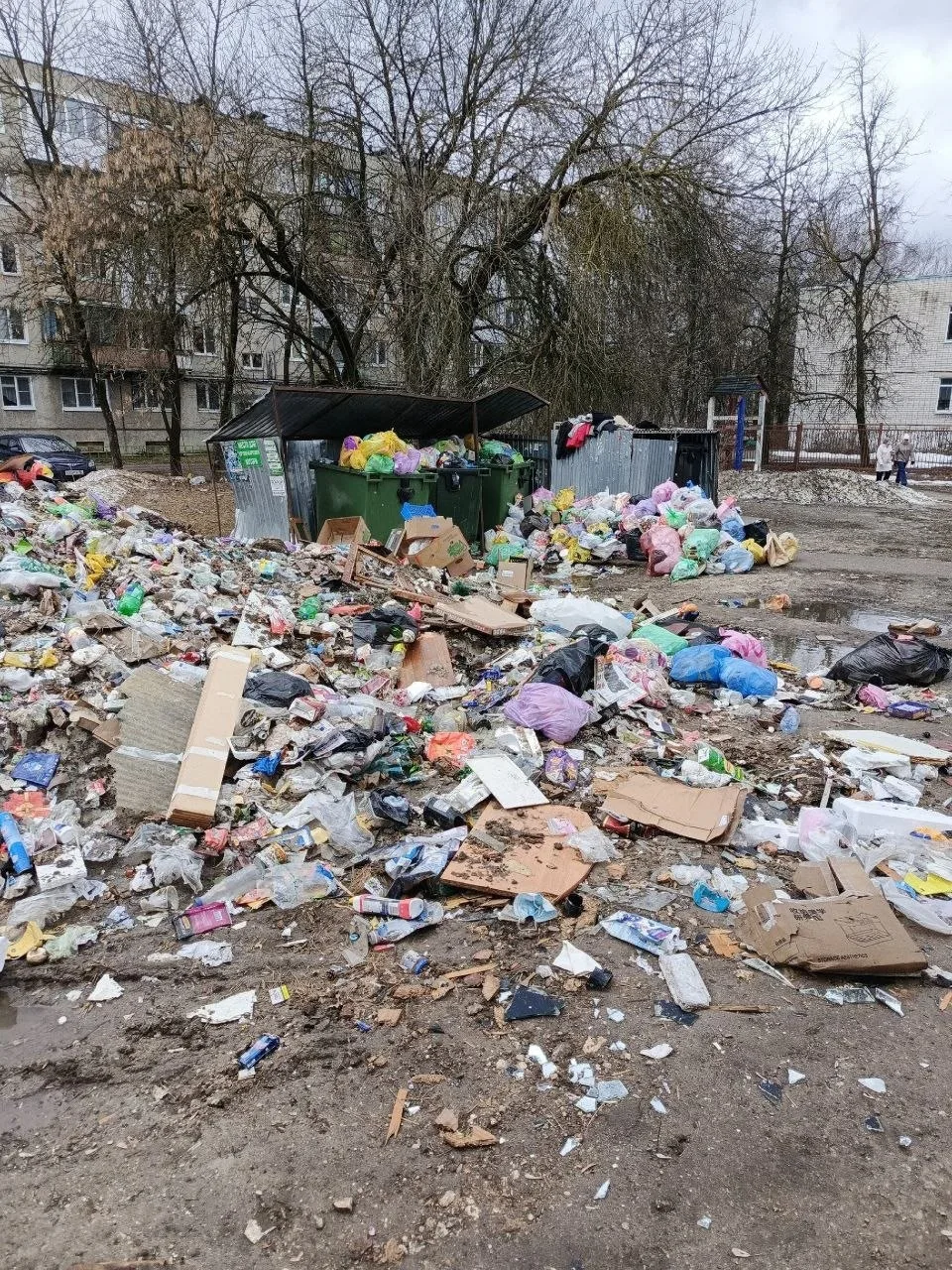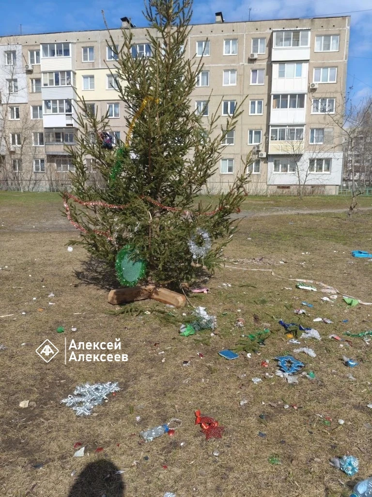 «В конце декабря у нас в районе школы №27 прошла «Депутатская ёлка». Новогодние праздники давно закончились, а новогодняя ёлка и новогодний мусор остались»