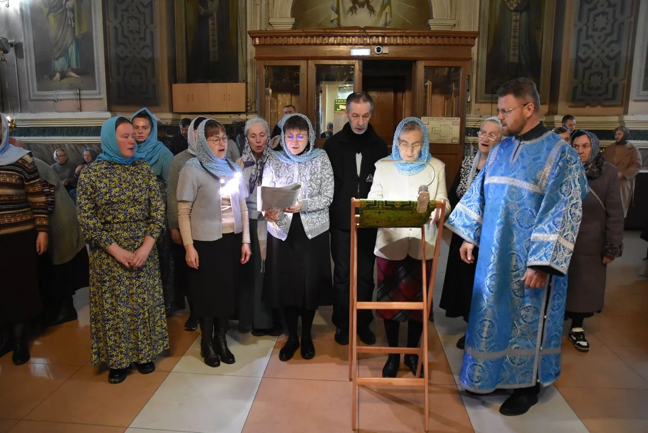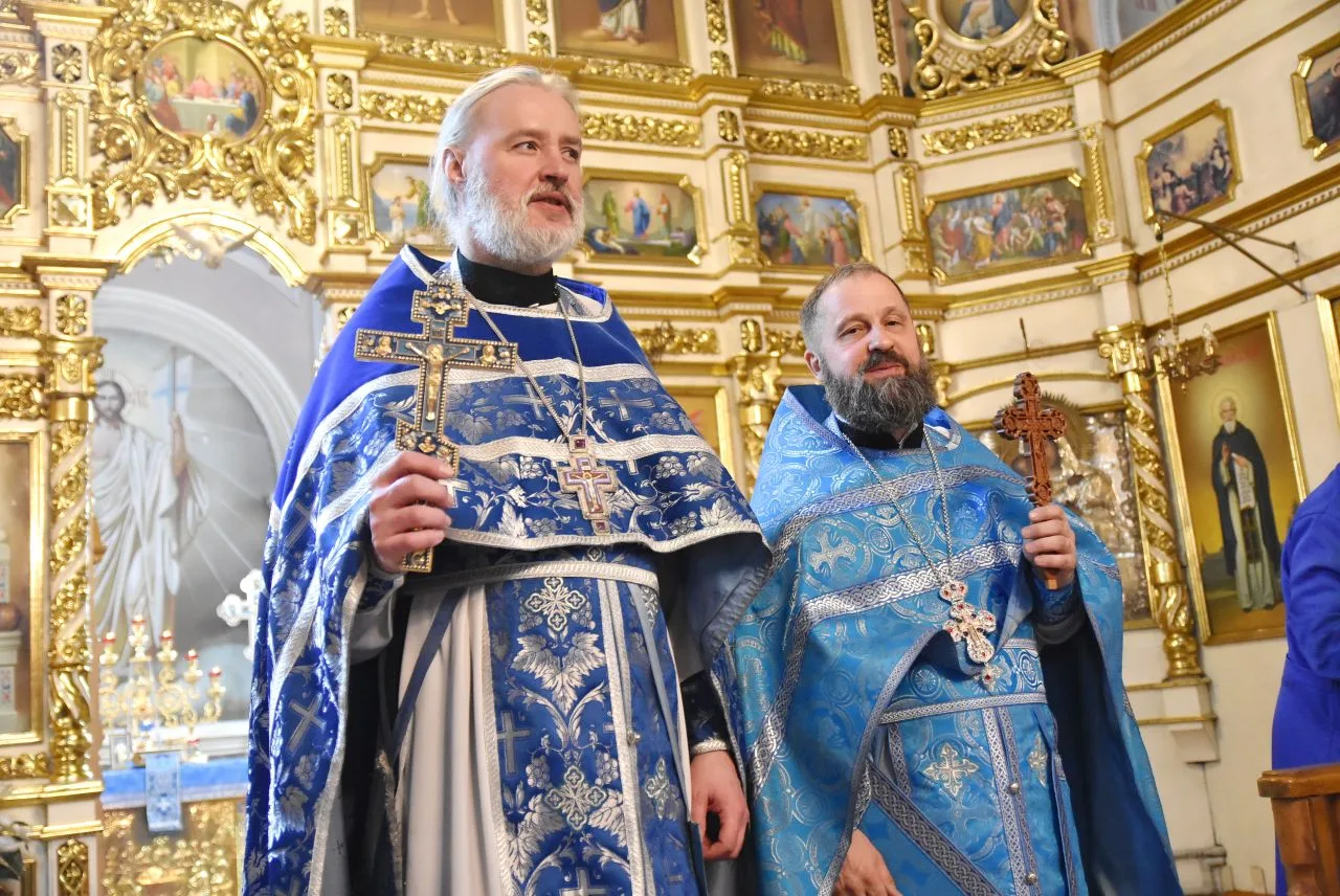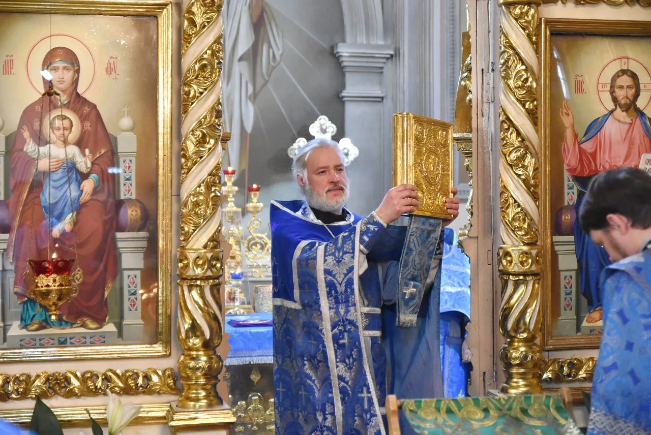 Сослужили ему настоятель Благовещенского прихода, протоиерей Александр Поляшов и клирик Воскресенского собора, диакон Андрей Лопарев.