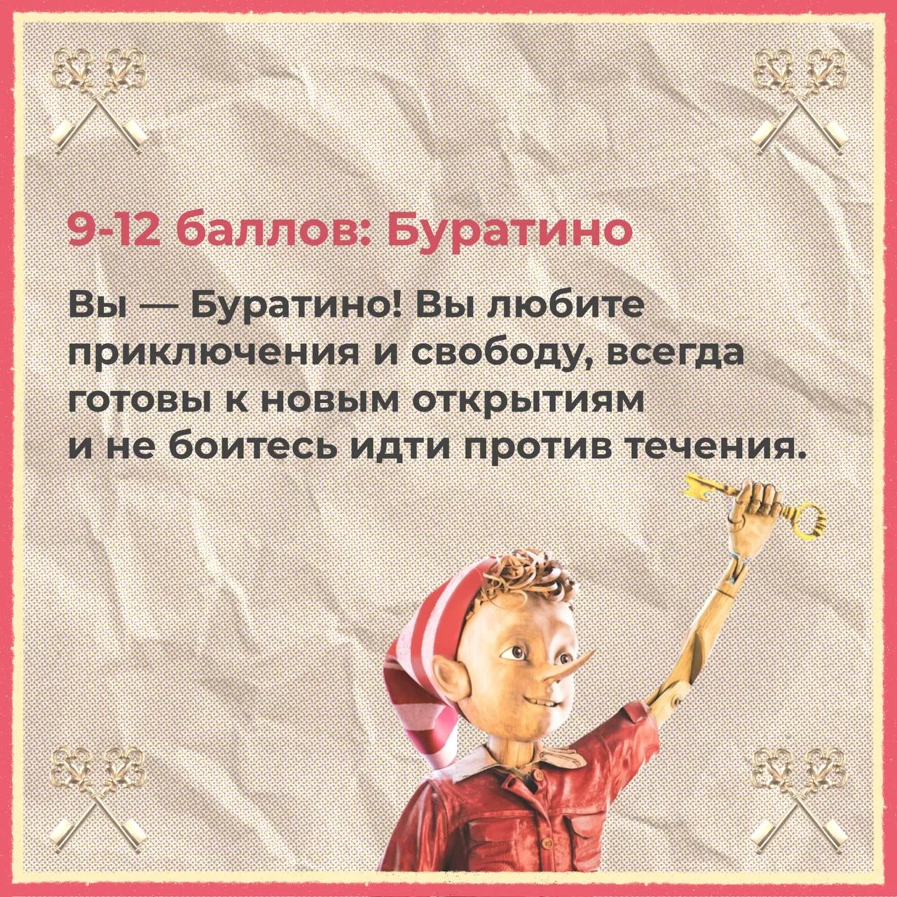 Сейчас прокат штурмует фильм «Буратино», собравший за праздники более 2 млрд рублей. Вот и мы вдохновились после просмотра на тест с любимыми героями сказки. 🤪