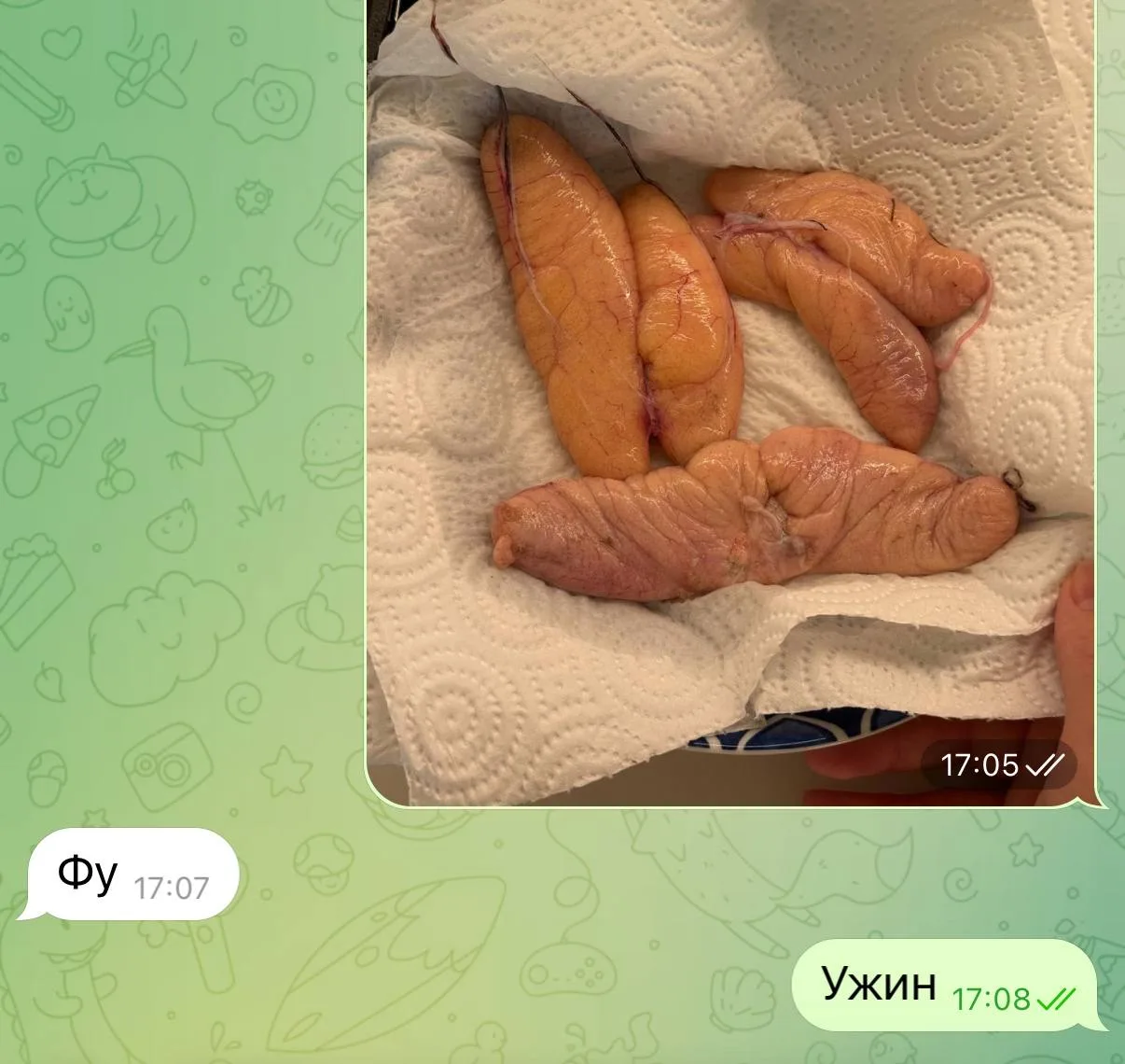 Всего лишь готовлю салат с икрой хека… почему сразу фу. Кстати, посмотрела нового «Франкенштейна» Гильермо дель Торо. Рекомендую