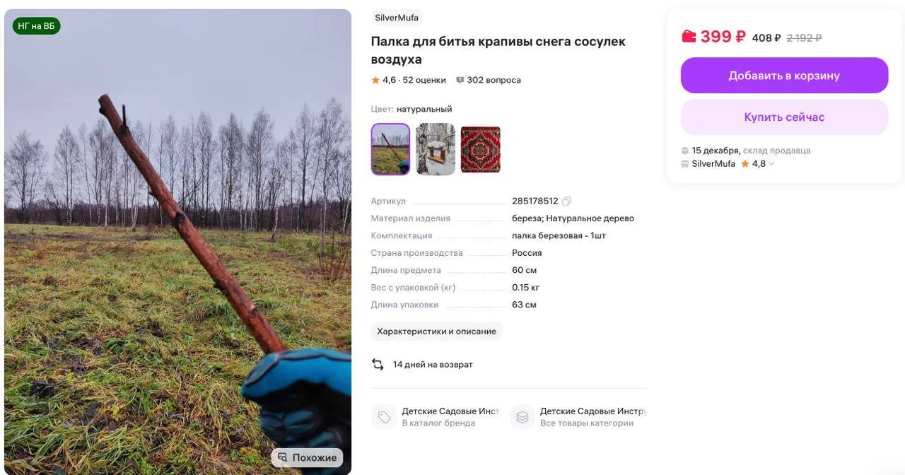 Если у вас сегодня по плану есть онлайн шопинг, то держите супер находку — палка для битья крапивы