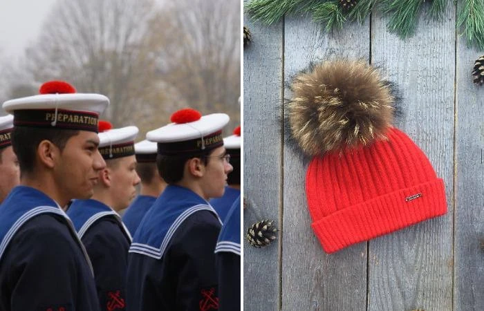 Оказывается, вовсе не для красоты, и не для того, чтобы дергать за них друг друга. Их носили изначально французские моряки — помпон частично предохранял голову от ударов об низкие потолки. А еще было поверье, что если тайком прикоснуться к помпону моряка, то это принесет удачу