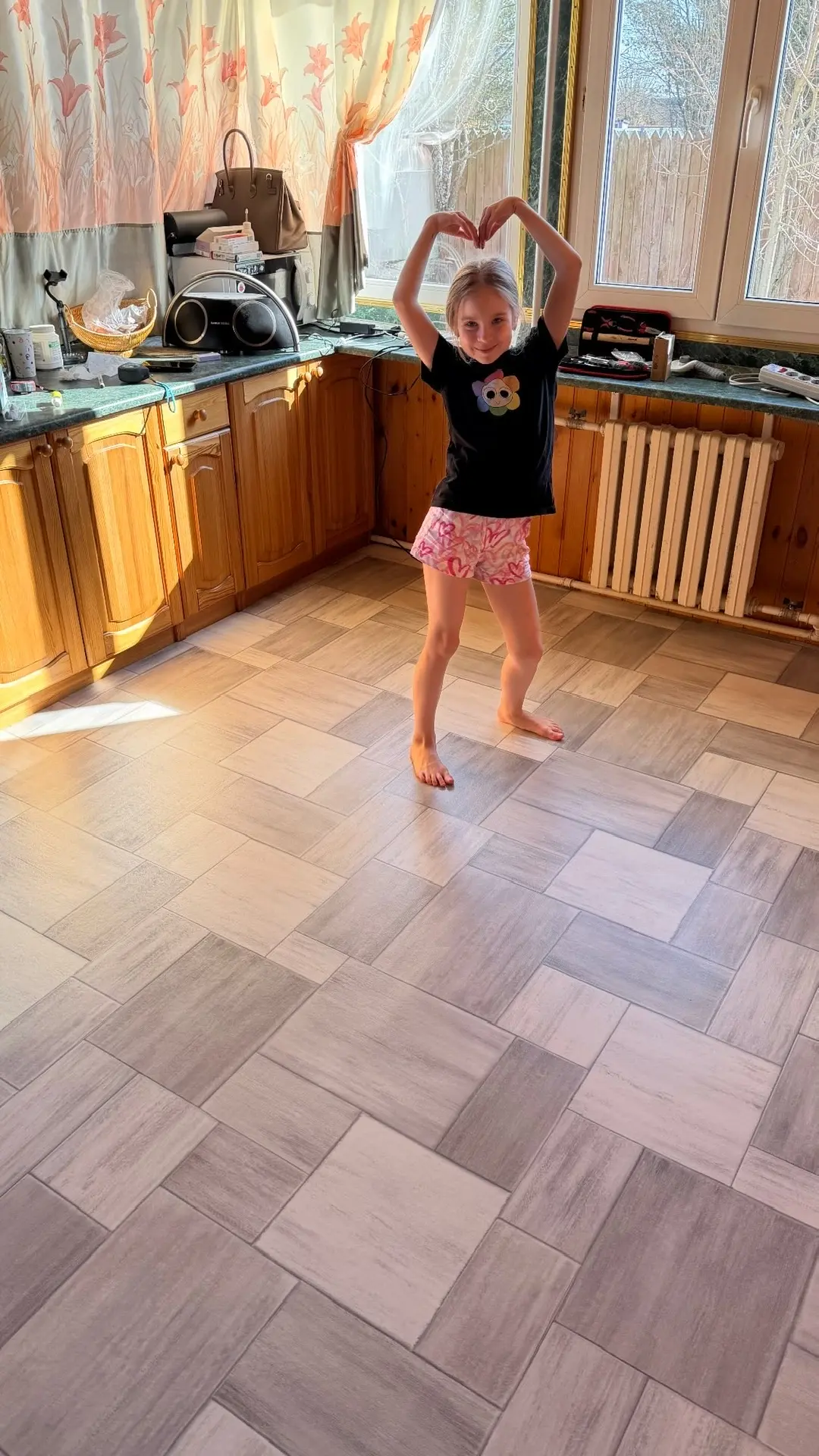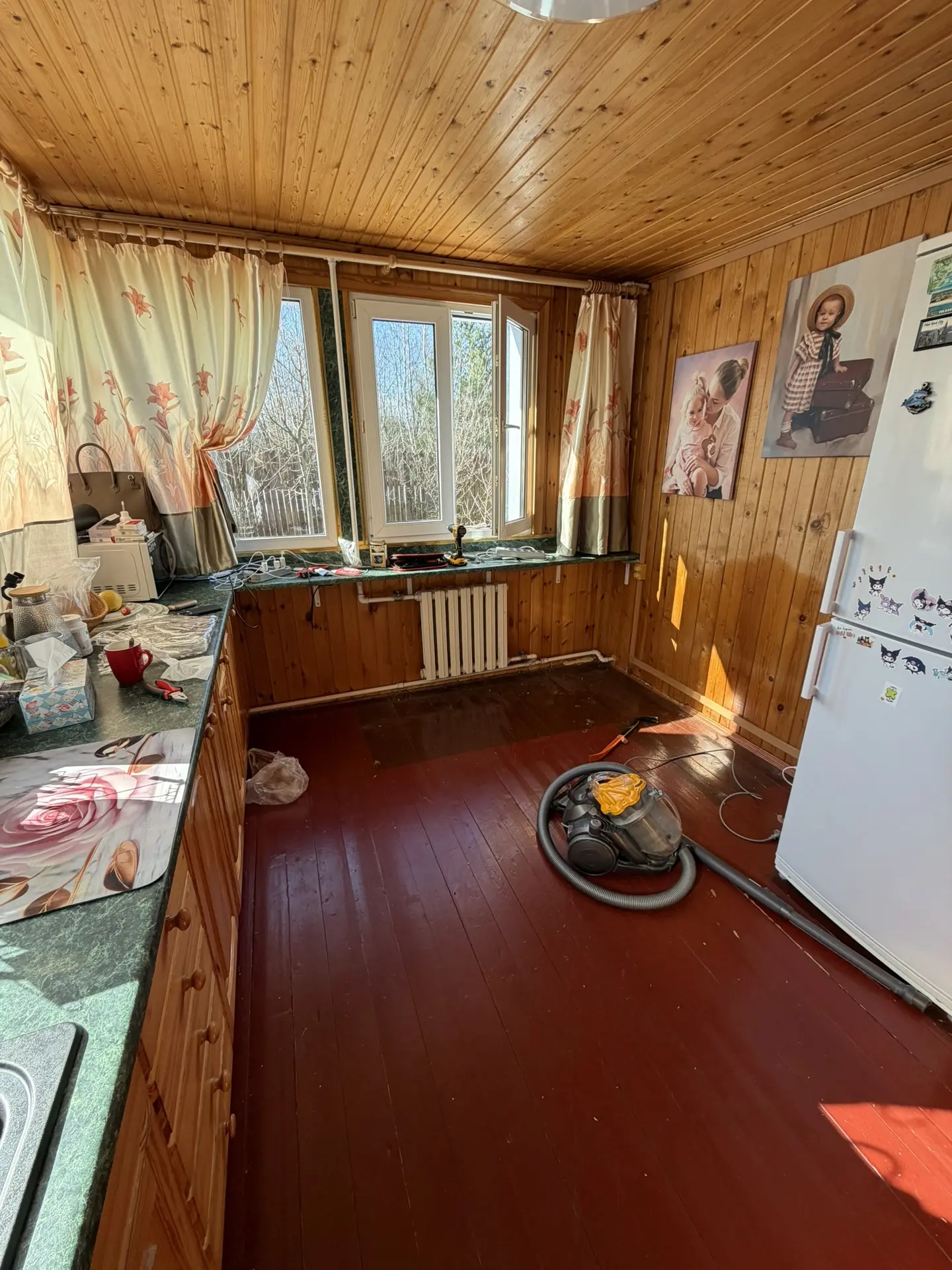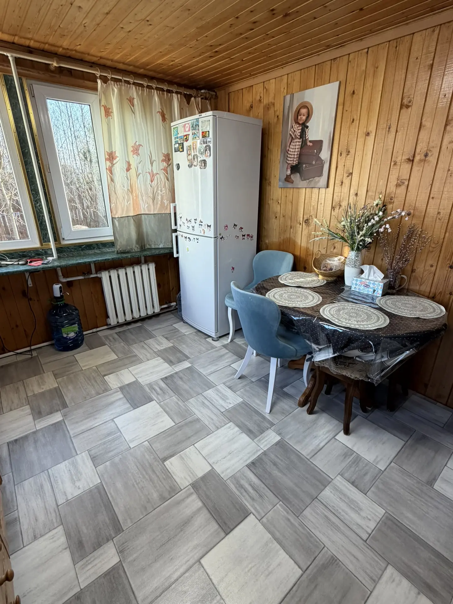 Завтра поедем покупать линолеум покупать. Муж хочет постелить на кухне, как вот на веранде сделал. А я только за😄