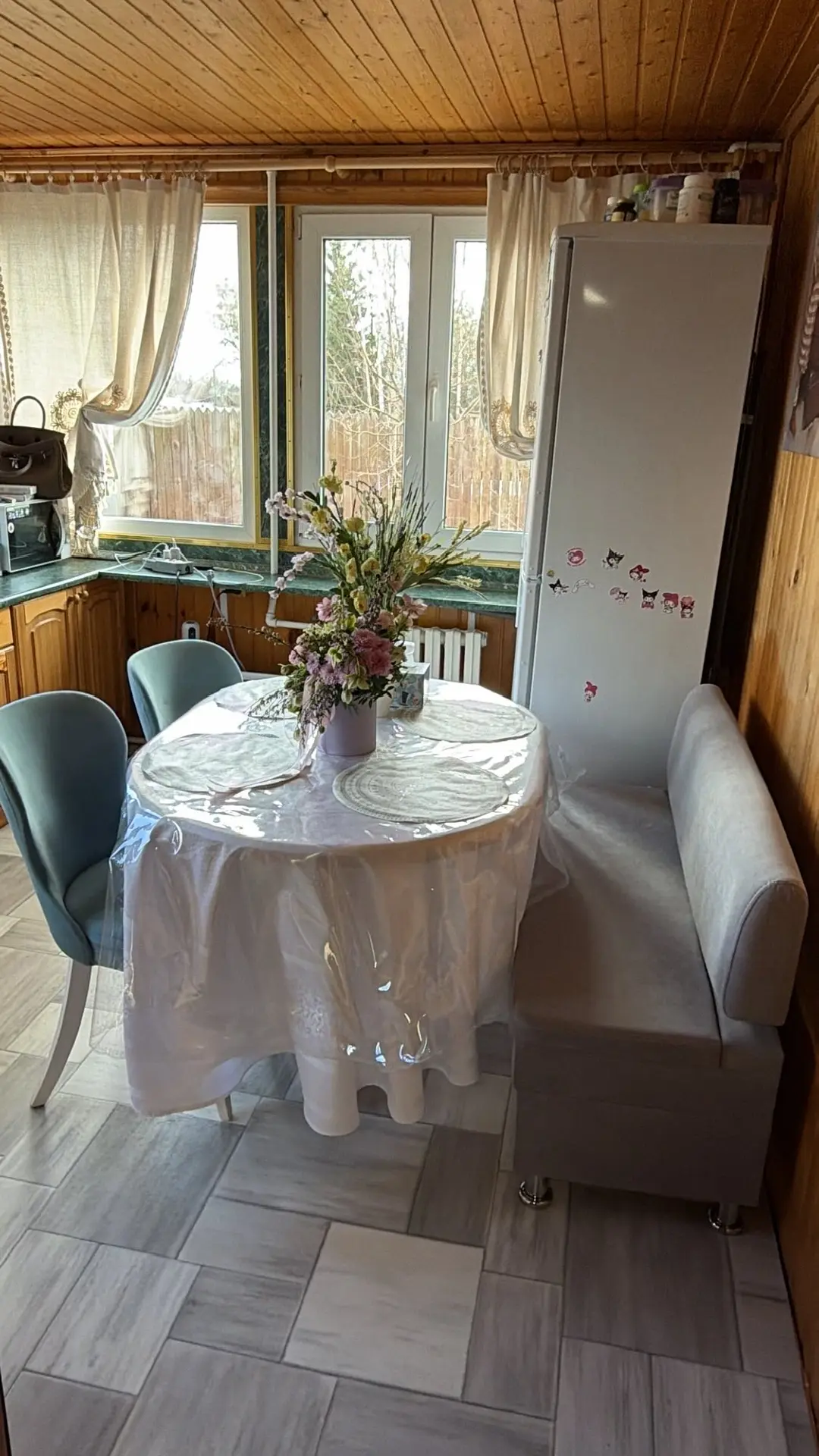 А завтра вернемся на дачу , туда должны диванчик привести на кухню ☺️