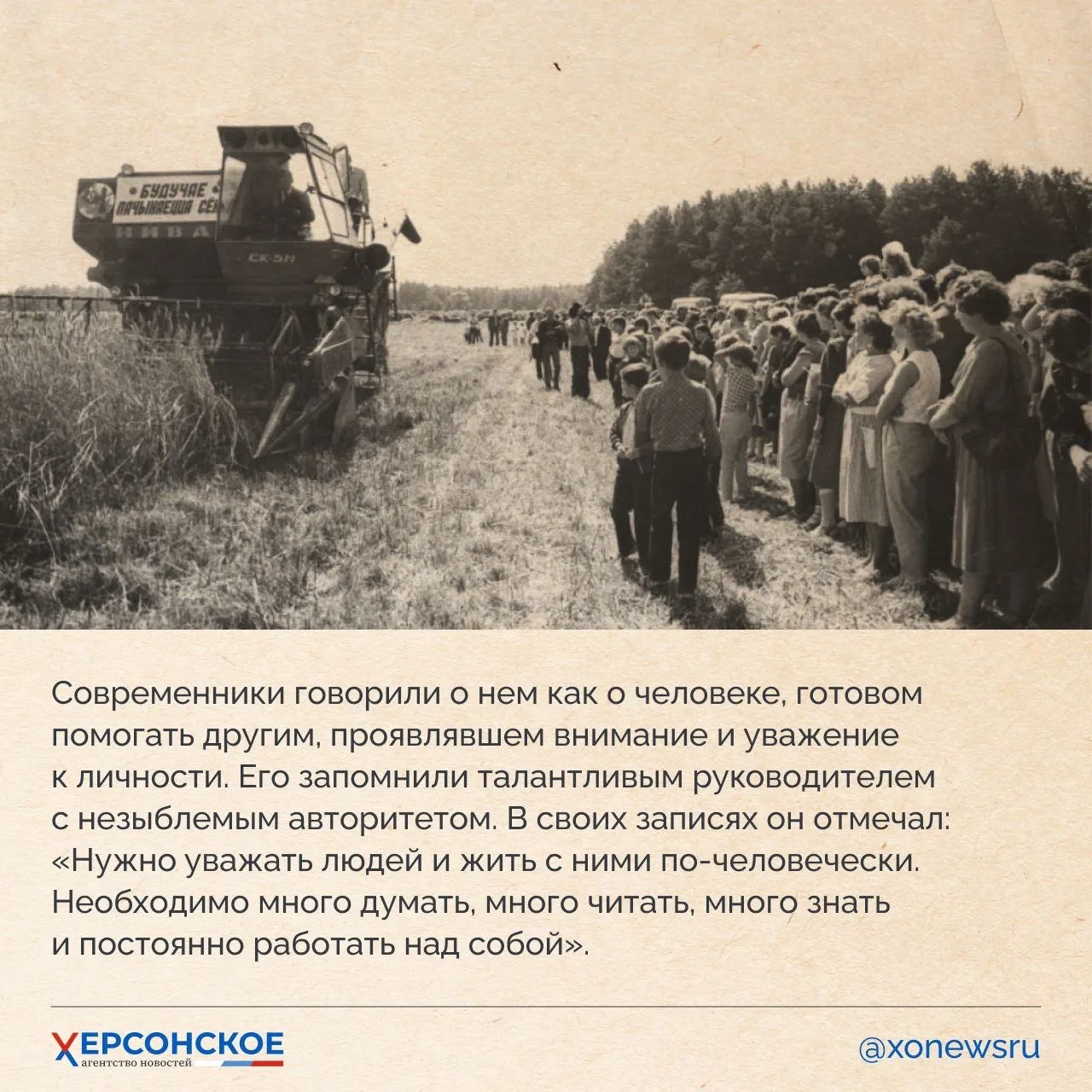 🚀 Новая история — о судьбе Дмитрия Моторного из села Преображенка, который стал легендой аграрной отрасли. Под его руководством колхоз имени Кирова превратился в передовое предприятие, где рядом с современными производственными цехами выросли Дом культуры, школа и детский сад для сельчан.