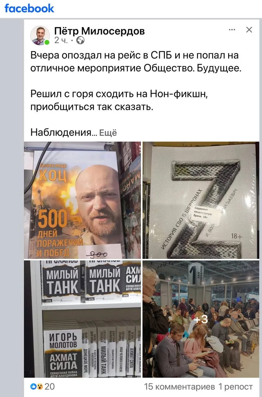 Пётр, как он сам пишет, «благополучно» 🫠 опоздал на самолёт в Петербург. Но, как говорится, нет худа без добра: вместо Питера судьба занесла его на международную книжную ярмарку non/fiction №27, которая в эти дни проходила в столичном «Гостином дворе».