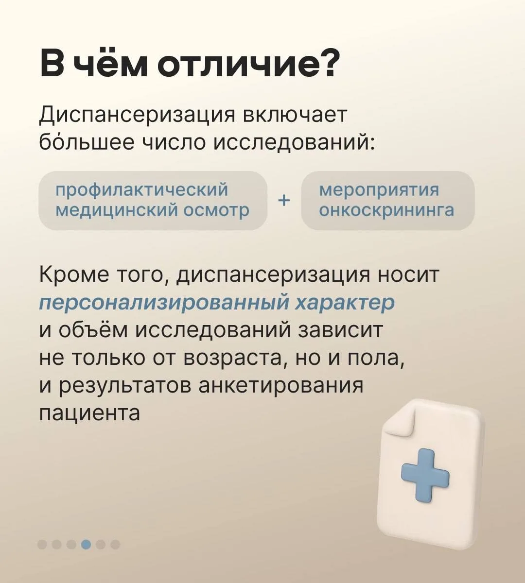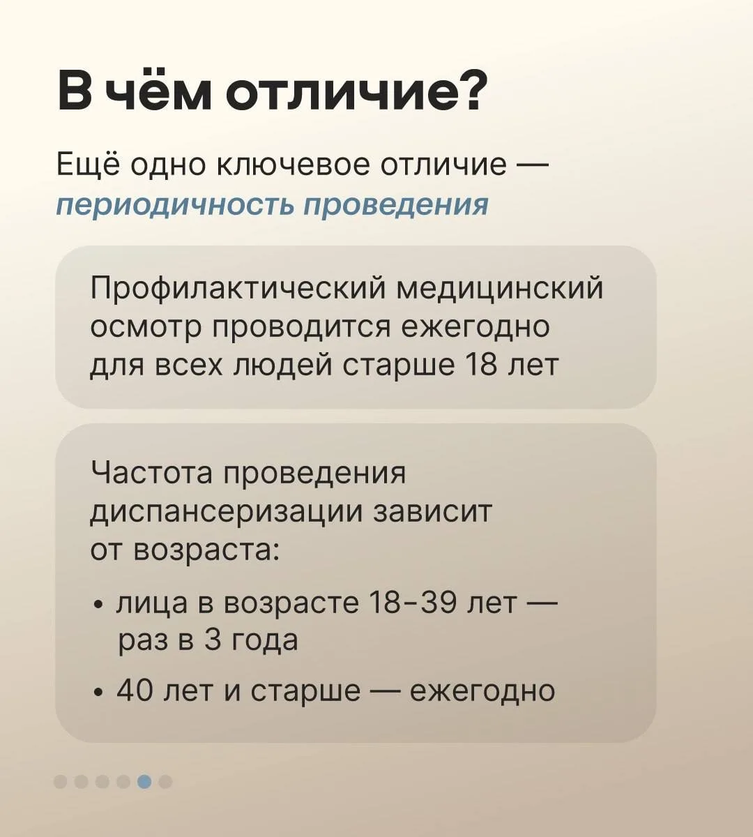 Мы создаем все условия, чтобы забота о здоровье была простой и доступной для каждого южноуральца. Секрет долгой и активной жизни прост: регулярный проверочный осмотр организма, который позволяет выявить риски на самой ранней стадии. Для этого в Челябинской области действуют два важных направления: профилактический медицинский осмотр и диспансеризация. В чём разница? Это можно узнать в карточках!