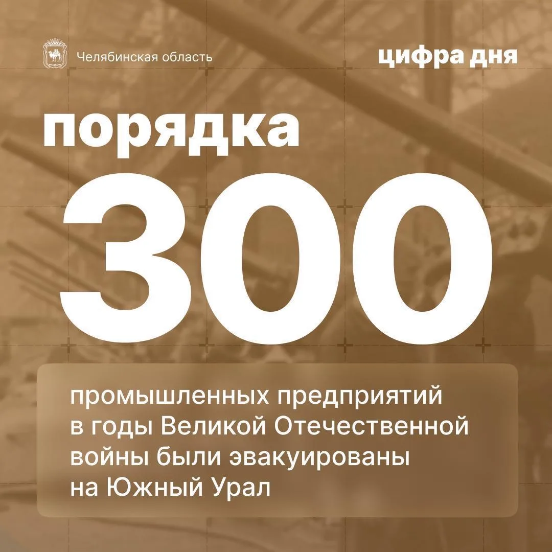 Цифра дня: порядка 300 промышленных предприятий в годы Великой Отечественной войны были эвакуированы на Южный Урал. Также было построено 37 новых заводов.