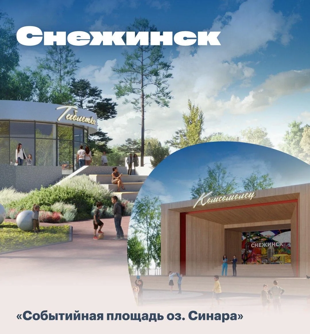Снежинск: создается красивая «Событийная площадь» в парке культуры и отдыха на озере Синара. Площадь объединит объекты славного прошлого с современными решениями — появятся арт-объекты, благоустроенные зоны отдыха и новая инфраструктура. У любимого места отдыха горожан появится целостный образ.