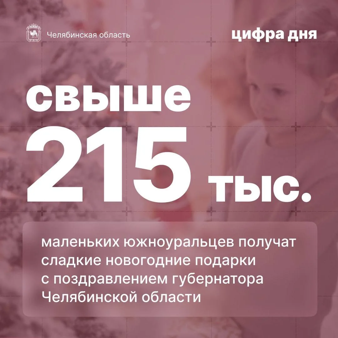 Цифра дня: свыше 215 тысяч маленьких южноуральцев получат сладкие новогодние подарки