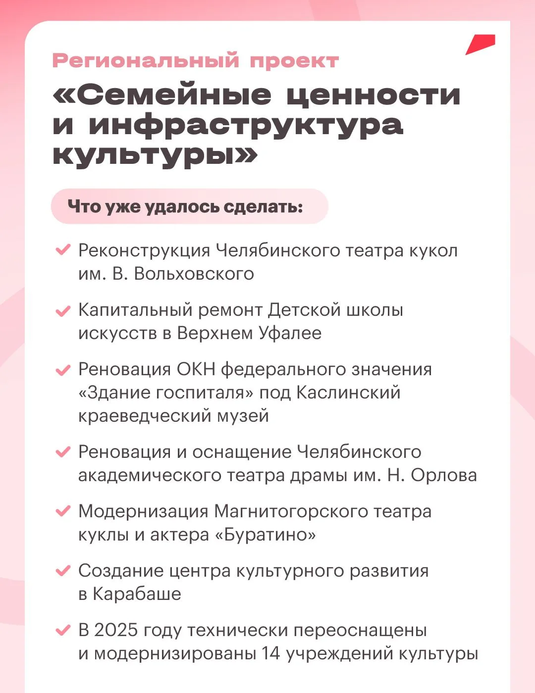 Челябинская область есть и всегда будет одной большой семьей. Поэтому нам важно всесторонне поддерживать родителей, создавать комфортные условия для воспитания детей и повышать качество жизни. Все подробности о нашей работе, о наших планах на 2026 год вы найдете в карточках.