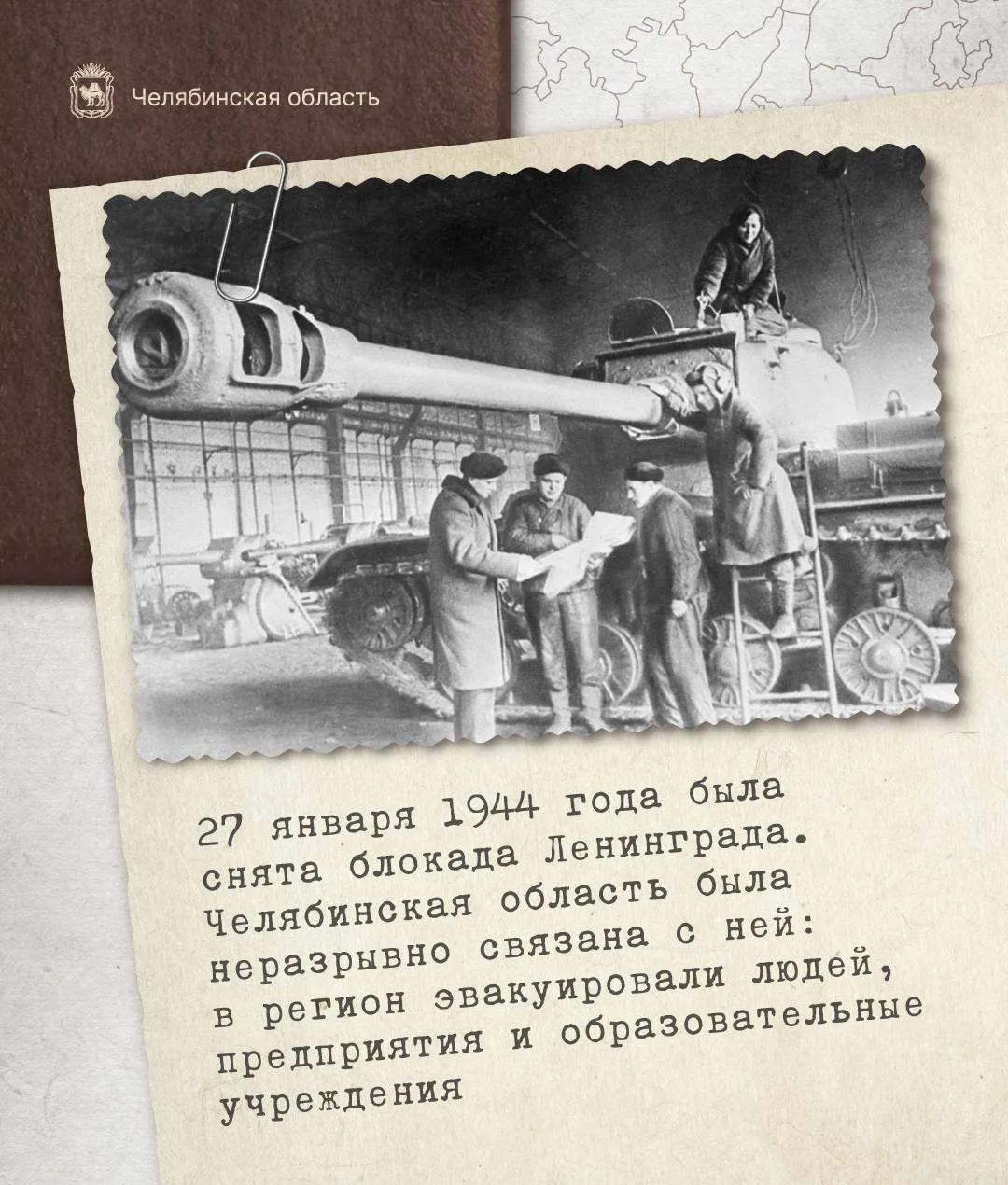 История блокады тесно переплетена с судьбой Челябинской области. На Южный Урал из Ленинграда было эвакуировано более 84 тысяч человек, в основном женщины и дети. А 23 эвакуированных предприятия, включая легендарный Кировский завод, вставший плечом к плечу с Челябинским тракторным, ковали здесь оружие для будущей Победы.