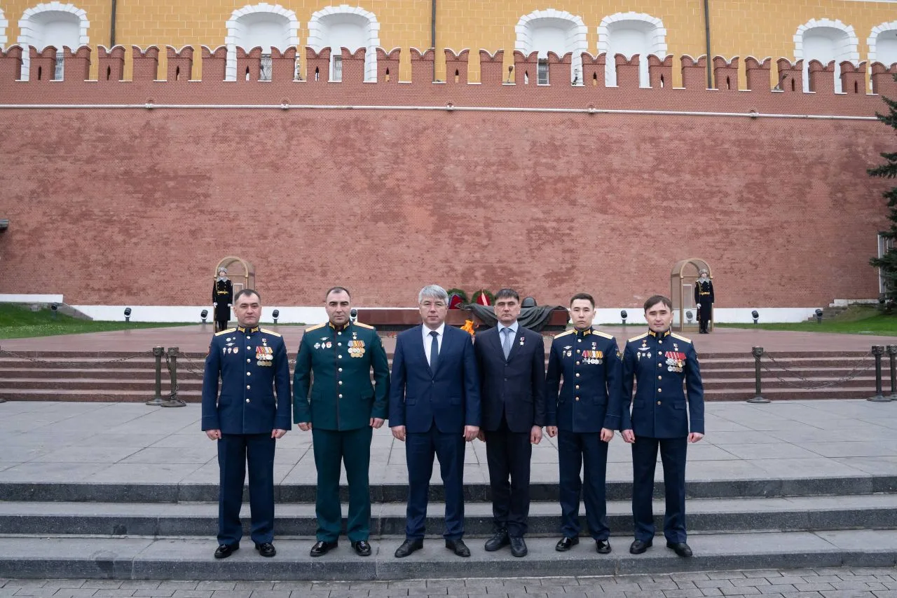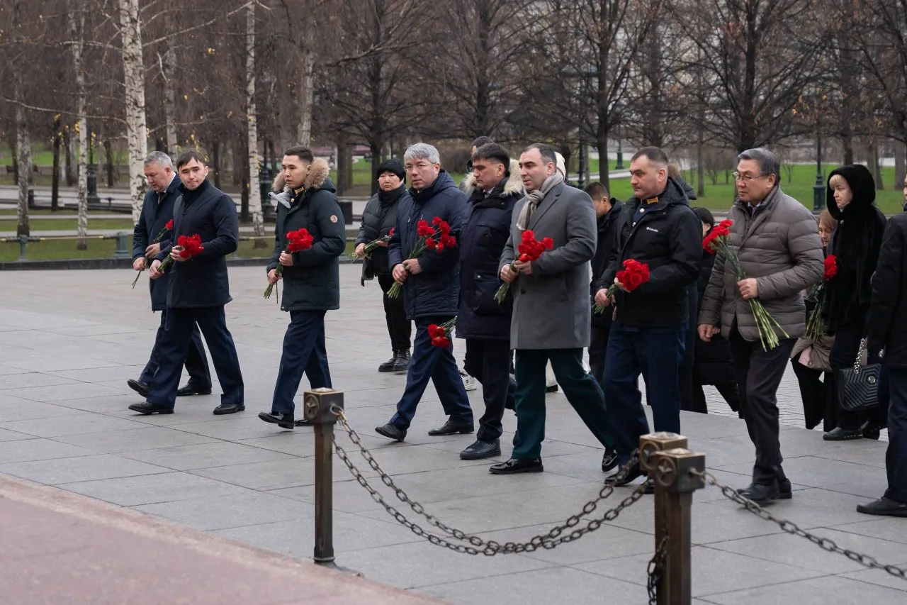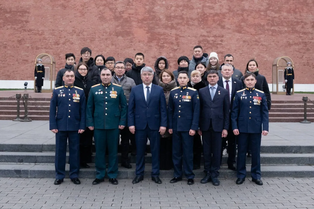 Вместе с Героями России из Бурятии возложили цветы к вечному огню.
