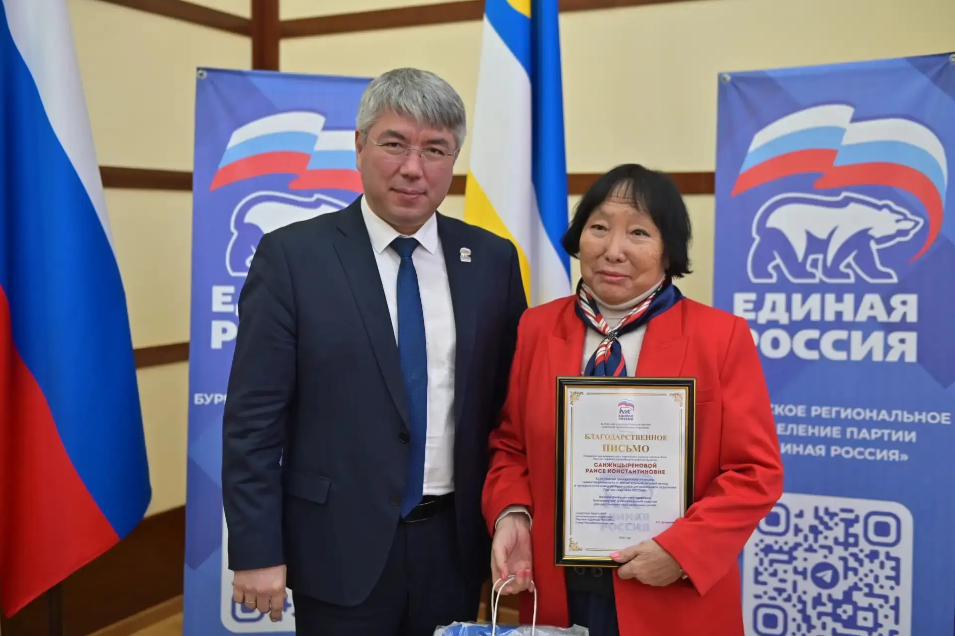 В этот праздничный день хочу выразить искренние слова благодарности ветеранам, которые создавали материальную и социальную основу района, — тем, кто строил школы и больницы, дороги и дома культуры. Сегодня это дело достойно продолжаете вы. Благодаря вашей энергии и инициативам Прибайкалье меняется, развивается, становится комфортнее и современнее.