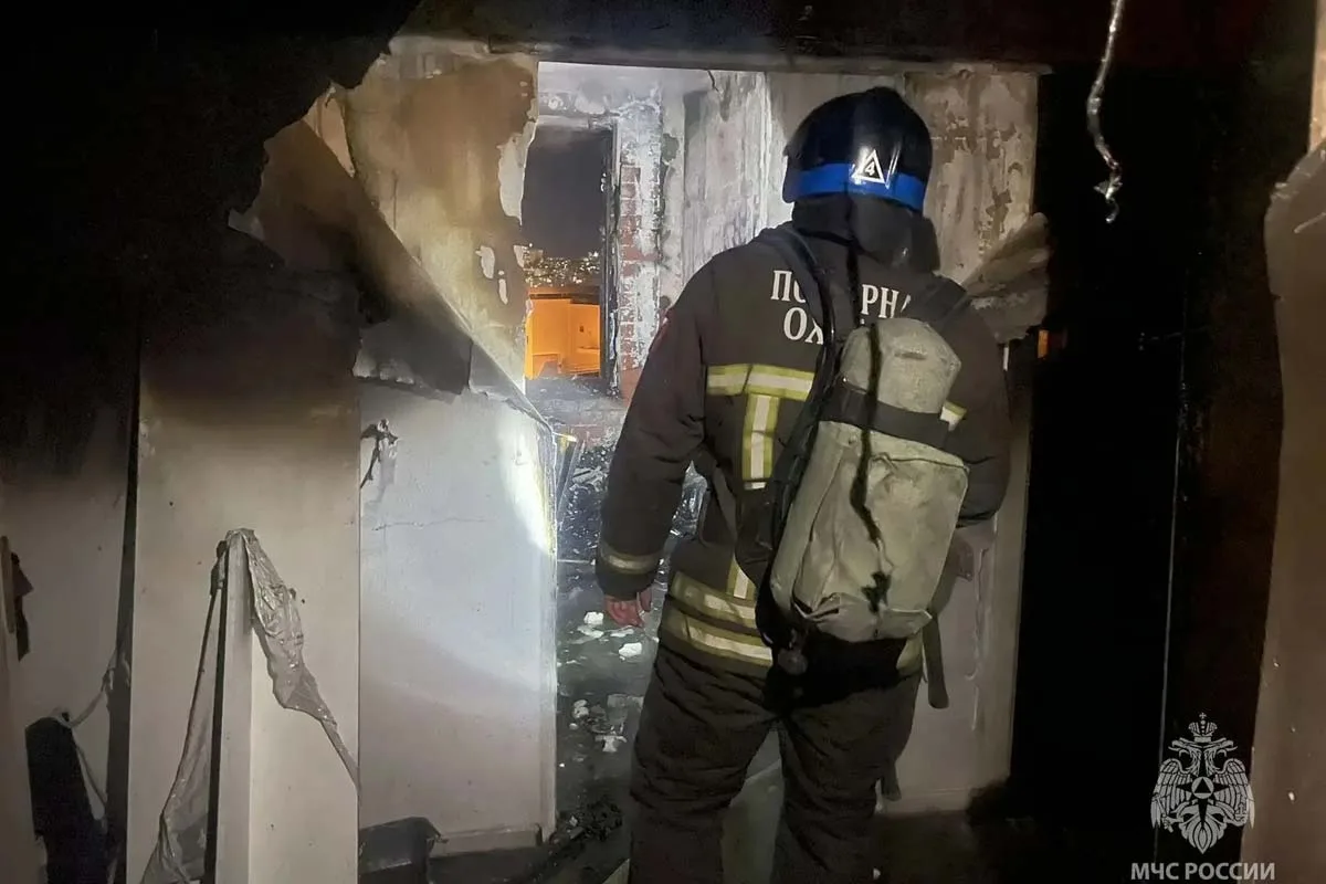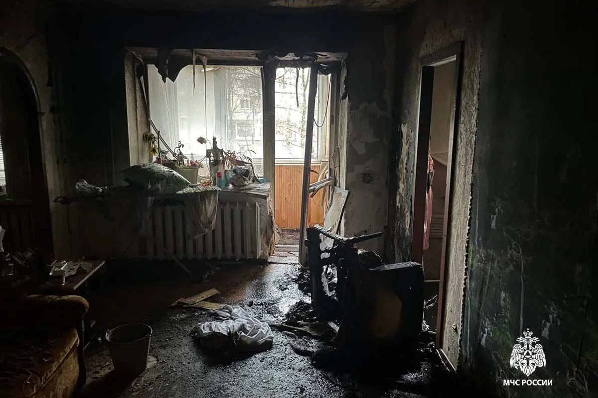 Расчёт прибыл на место в течение трёх минут после поступления вызова. К тому моменту огонь охватил имущество в одной из квартир, стены и потолок были сильно закопчены.