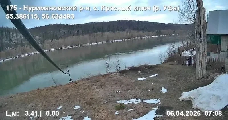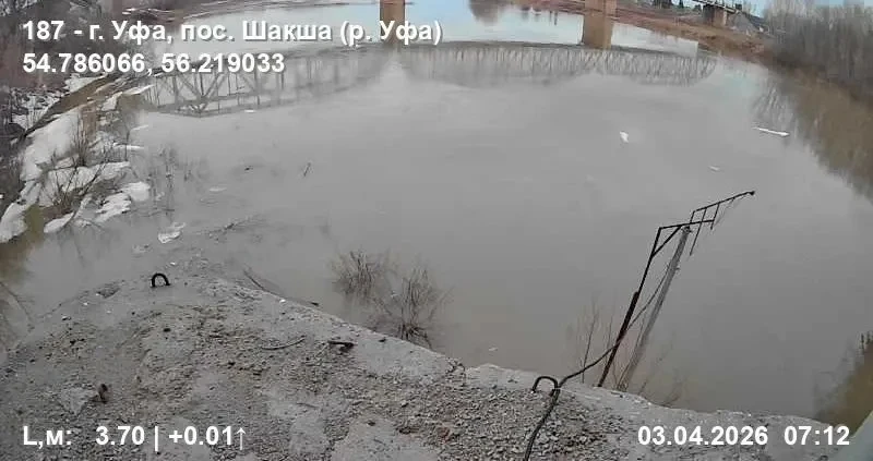 ⬆️на реке Уфе у поселка Шакша ГО г.Уфа, динамика уровня воды за сутки +69 см, текущий уровень 434 см, выход реки на пойму 830 см;