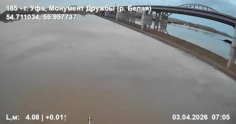 ⬆️на реке Белой в городе Уфе в районе Монумента Дружбы, динамика уровня воды за сутки +58 см, текущий уровень 463 см, выход реки на пойму 600 см;
