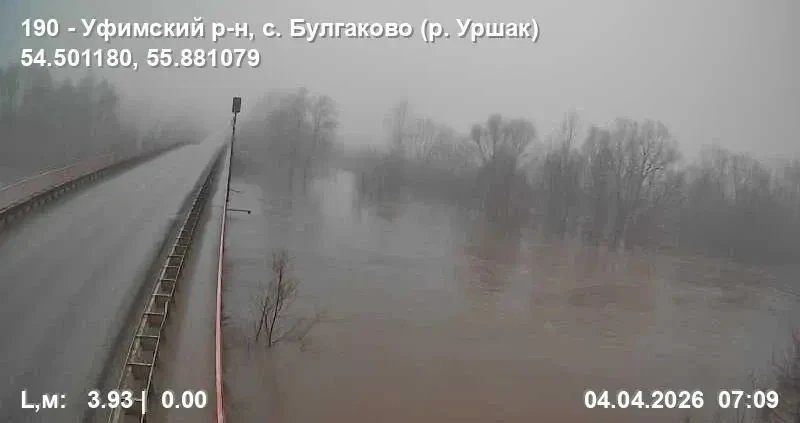 ⬆️ на реке Уршак у села Булгаково Уфимского района, динамика уровня воды за сутки +41 см, текущий уровень 391 см, неблагоприятный уровень 612 см.