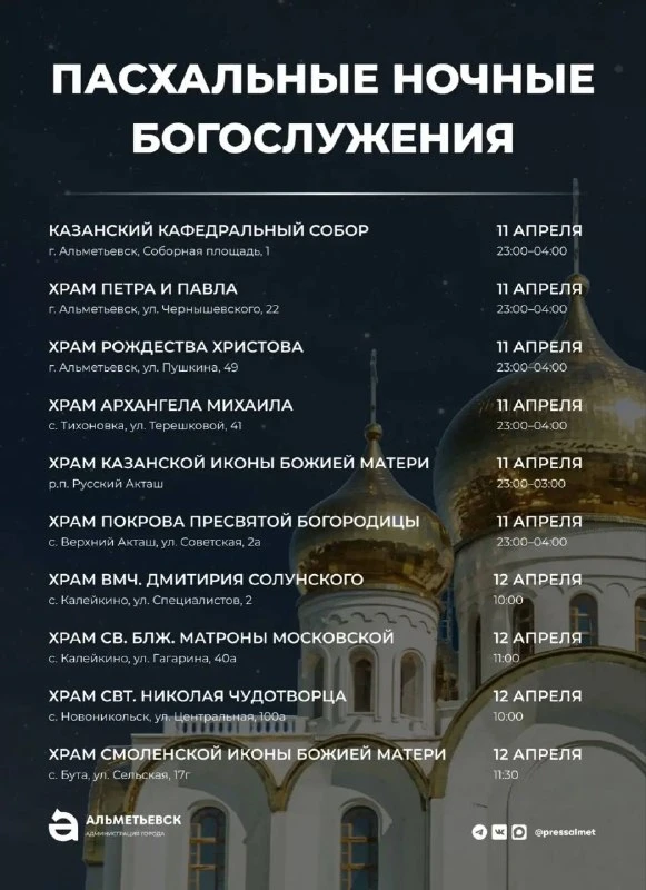 Пасхальные богослужения пройдут в десяти храмах Альметьевского района