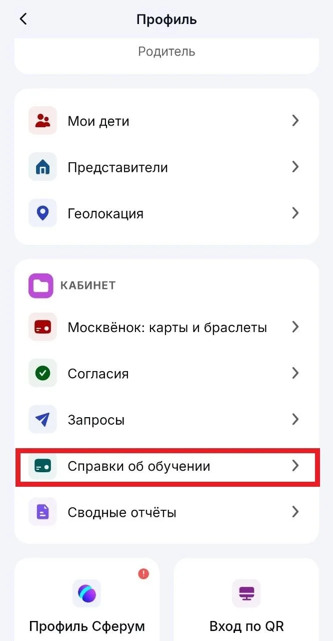 - Перейти в раздел «Справки об обучении».