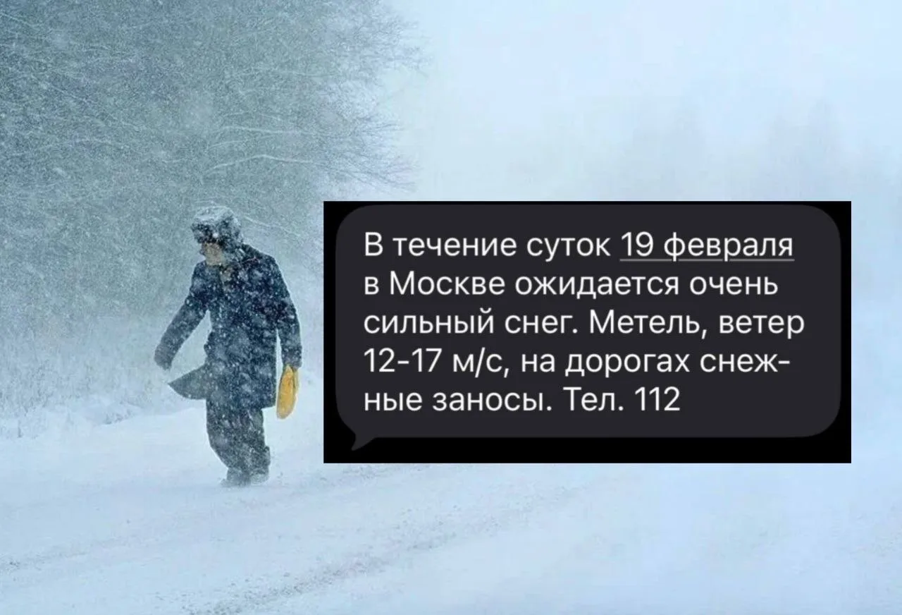 В течение суток 19 февраля в Москве ожидается очень сильный снег.