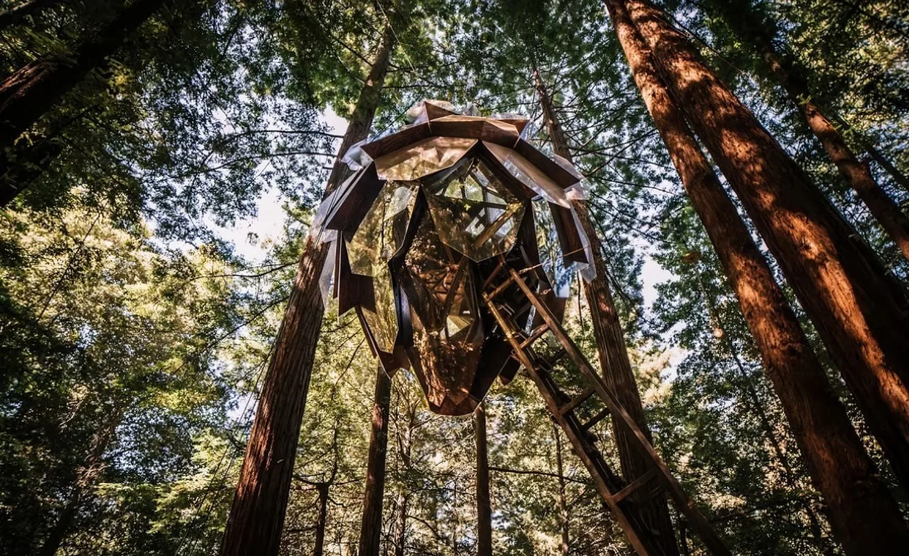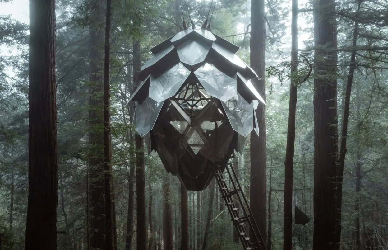 В лесу Калифорнии (США) сдают уникальный дом на дереве в виде гигантской сосновой шишки.