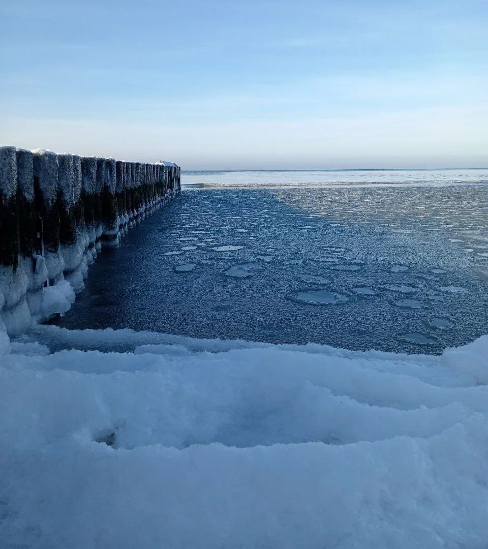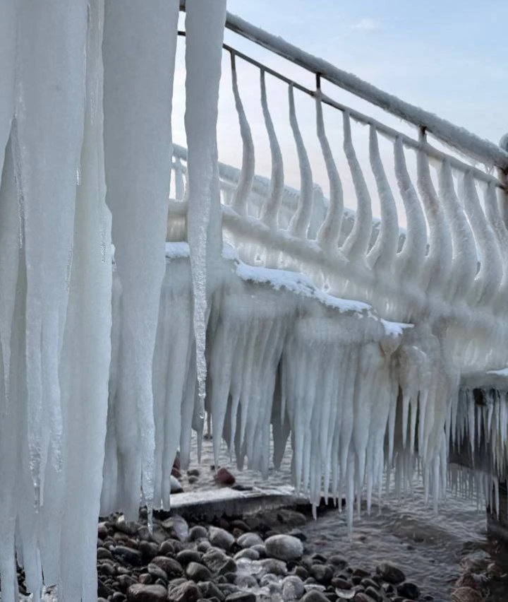 Заледеневшие перила, "люстры" из сосулек — и это мы сейчас не про замок Эльзы из "Холодного сердца". Это о Балтике.