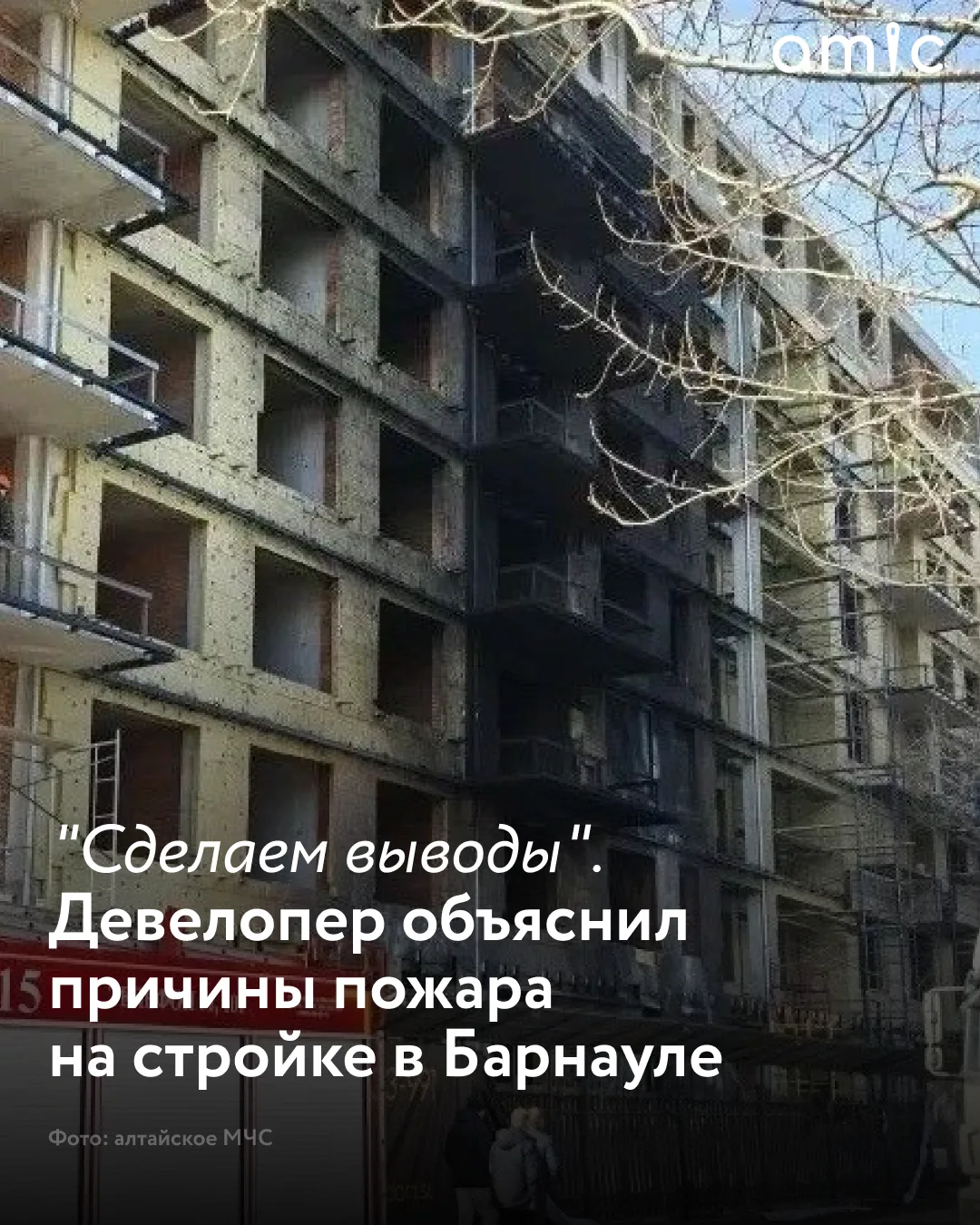 По его словам, конструкции здания не пострадали, однако оплавился участок уже смонтированного утеплителя, который заменят.