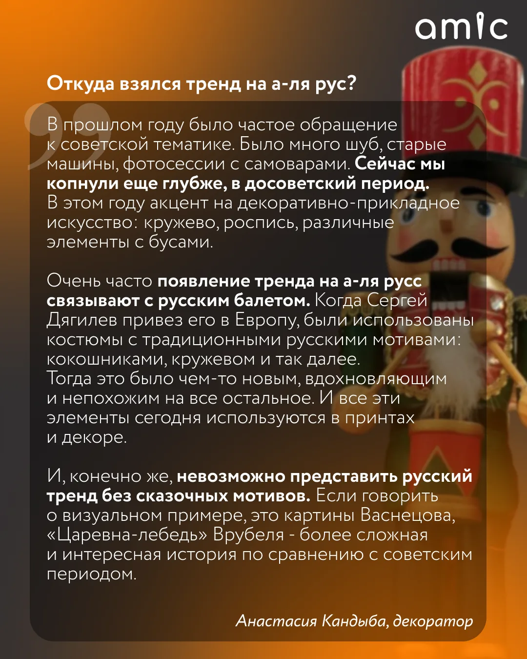 🎄 Собрали 6 основных трендов в декоре новогодней ели к предстоящим праздникам. А ещё узнали у декоратора, откуда взялся интерес ко всему исконно русскому и почему взрослые люди занимаются таким детским занятием, как украшение дерева и ожидание чуда.