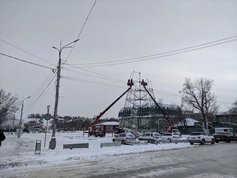 На площади Свободы в Барнауле идет строительство новогоднего городка. Тут уже заканчивают возведение каркаса главной елки. И уже подготовлены некоторые элементы: фигура "2026", гирлянды для украшения деревьев, каркас для консолей "Бокал" и многое другое. Завершить установку всех объектов планируется до 25 декабря, а 26 декабря состоится торжественное открытие главной городской елки.