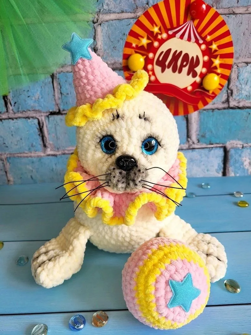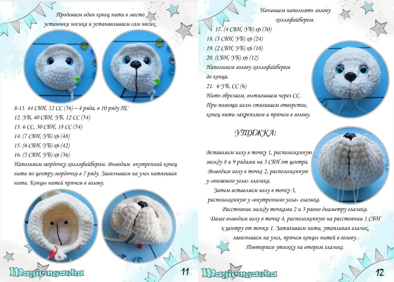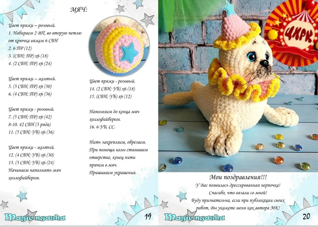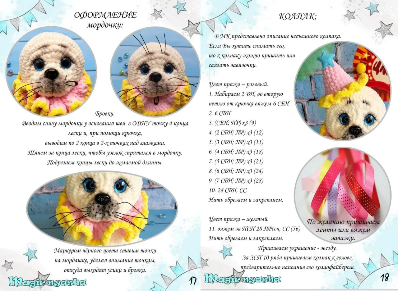 Набиваем игрушку наполнителем и сшиваем спинку за внутренние стенки сбн, этой же нитью вывязываем хвостик по схеме: набираем цепочку из 4вп, со второй петли 3сс, 6 вп, 5сс, 4вп, 3сс; делаем соединительный столбик в спинку игрушки, нить закрепляем, отрезаем, кончик прячем.
