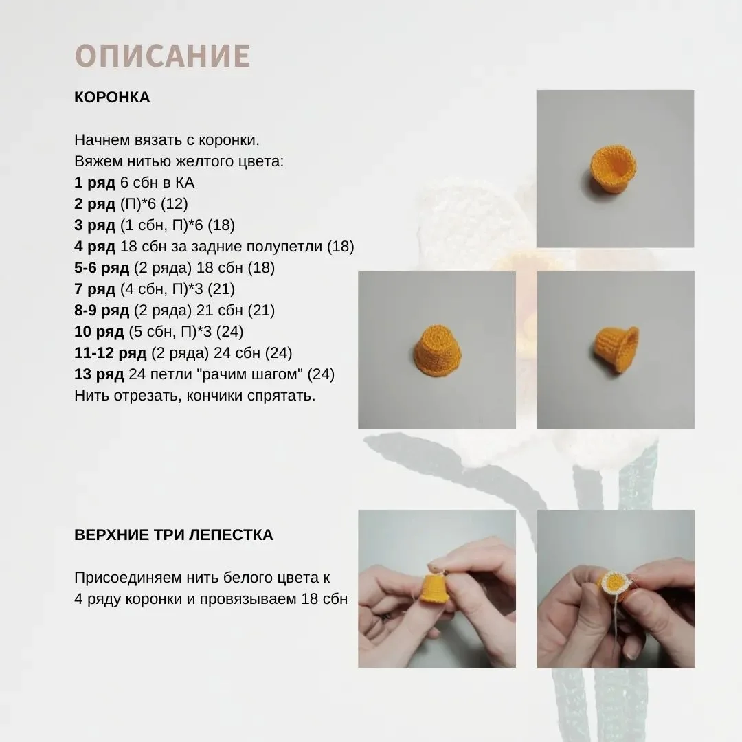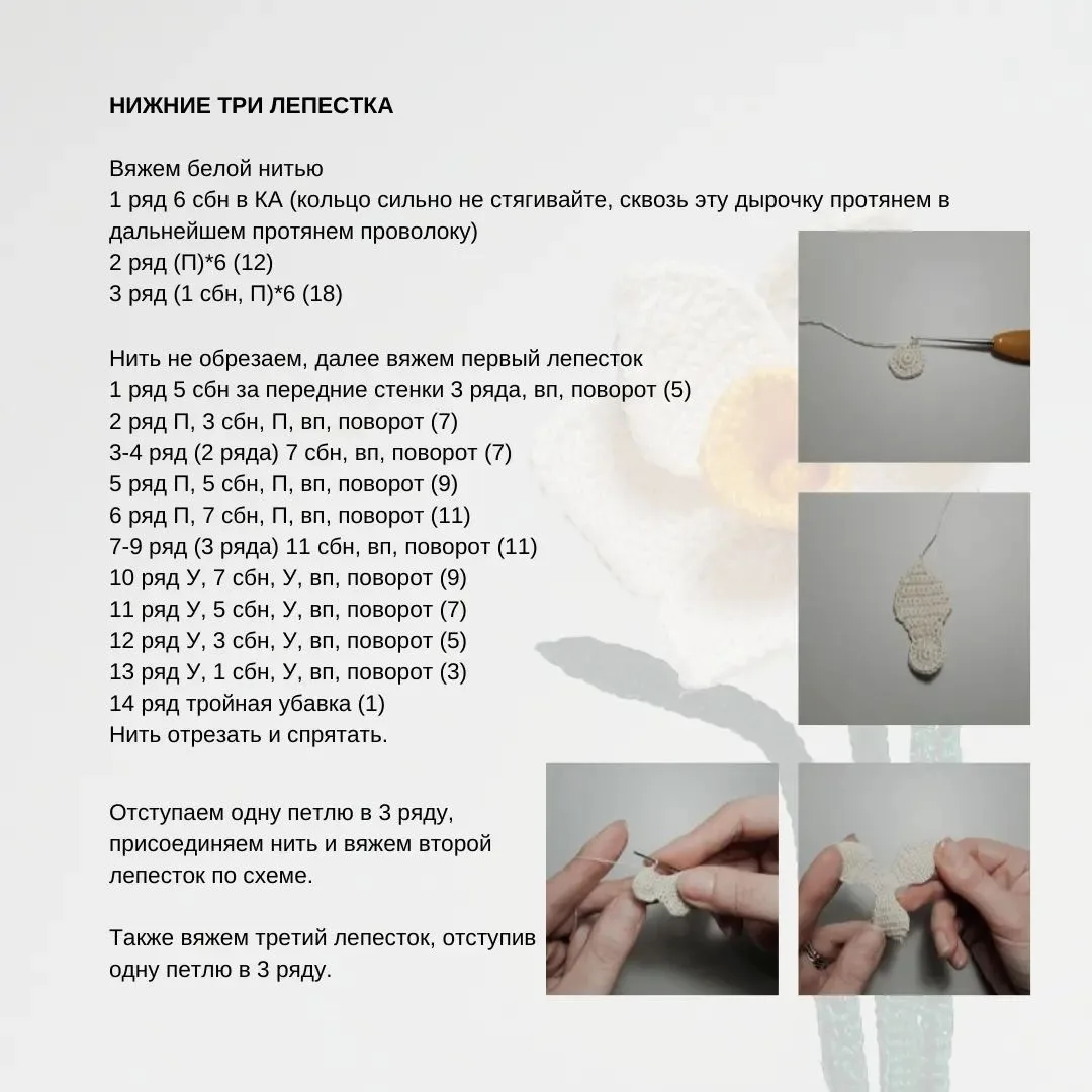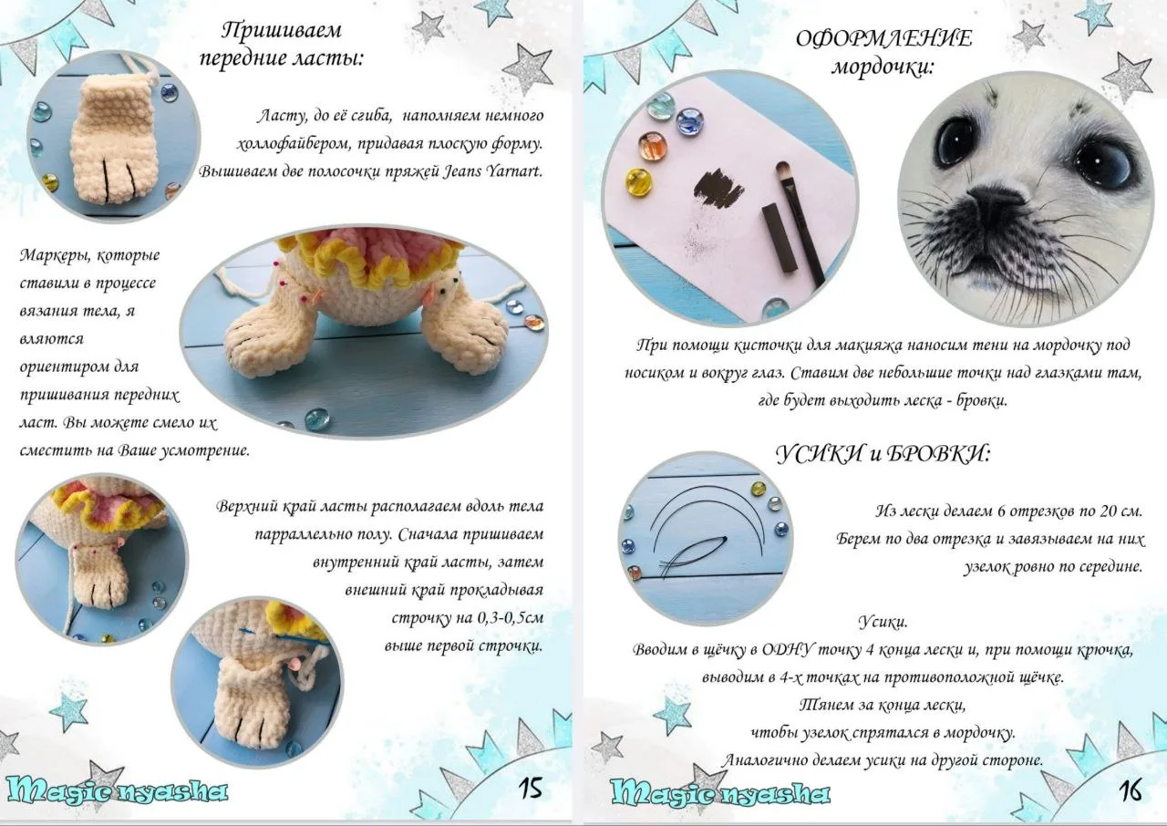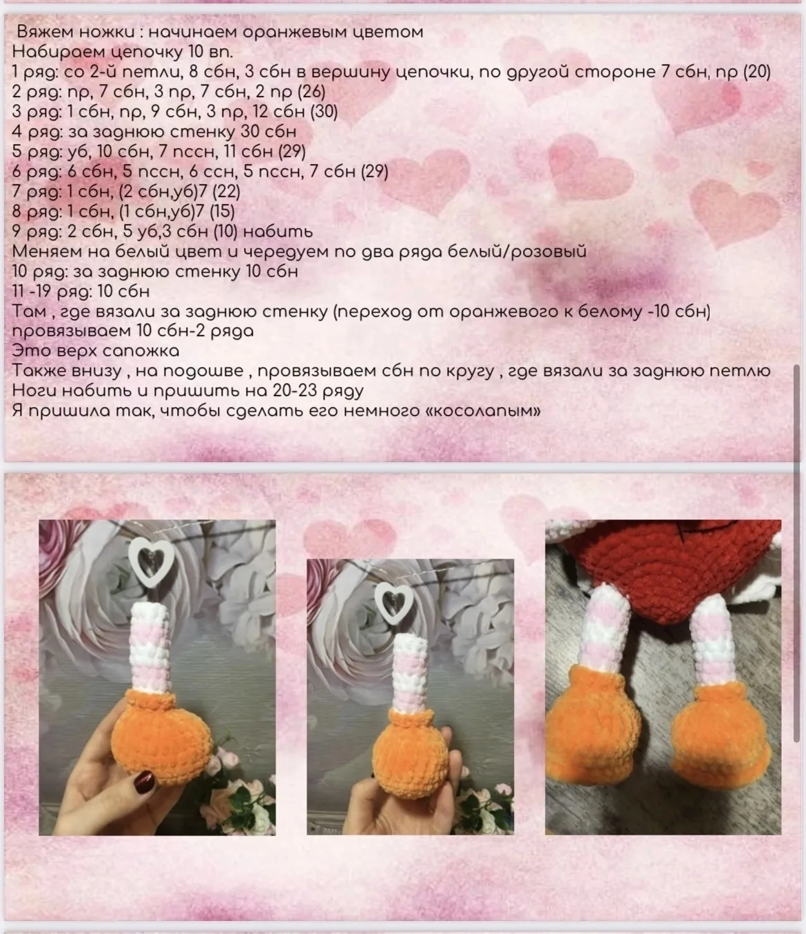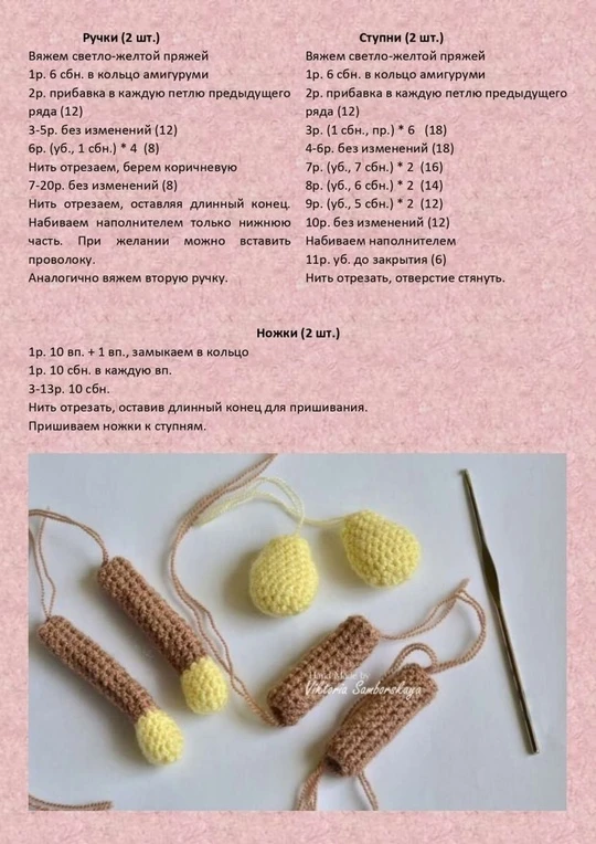 Набираем цепочку из 9 вп, со второй петли вяжем: 3 сс, 4вп, 3сс, 4вп, 3сс, 5 сс по основной цепочке. Вторую лапку вяжем аналогично. Пришиваем так, как показано на фото!