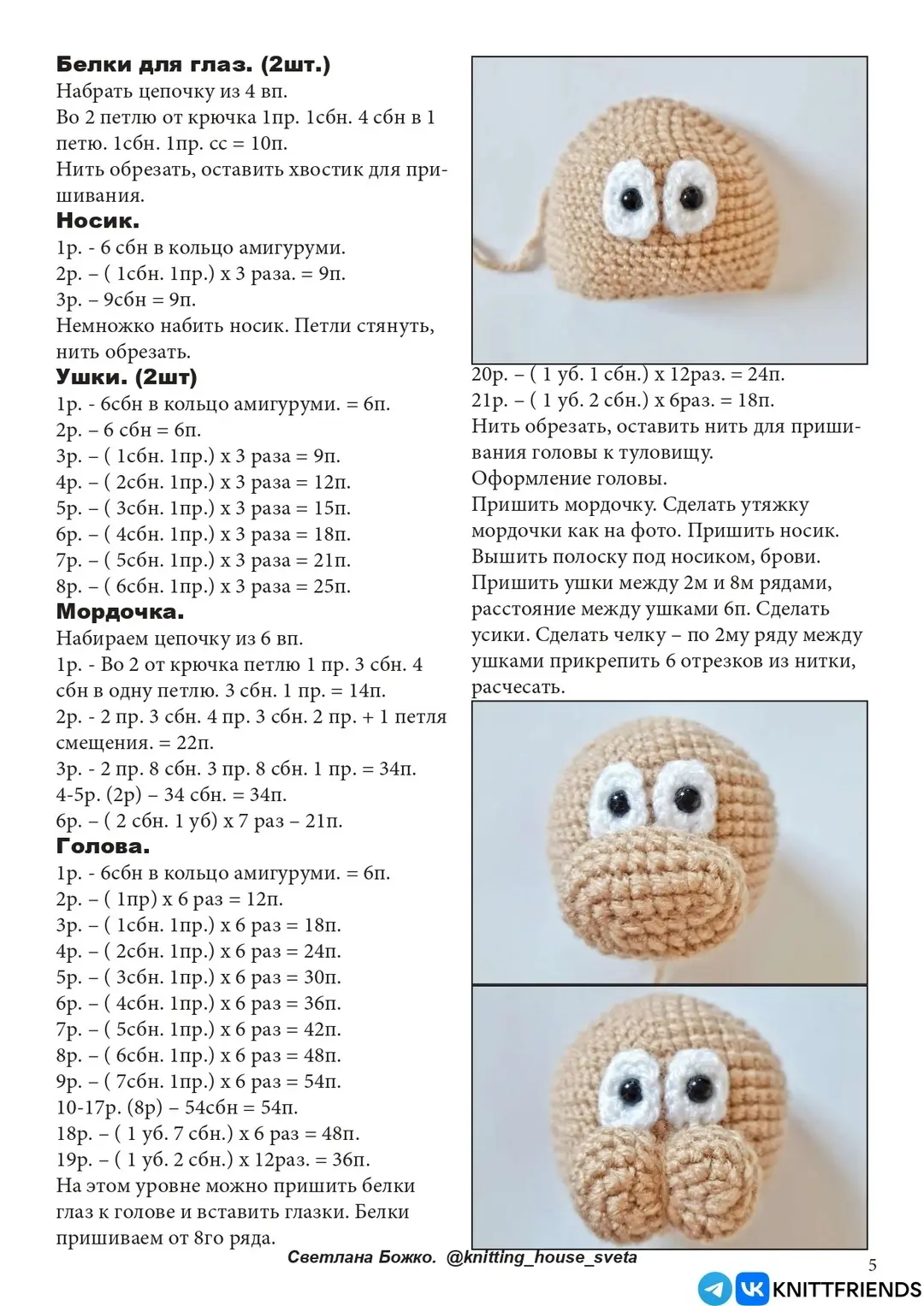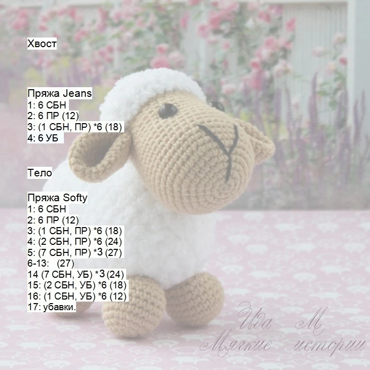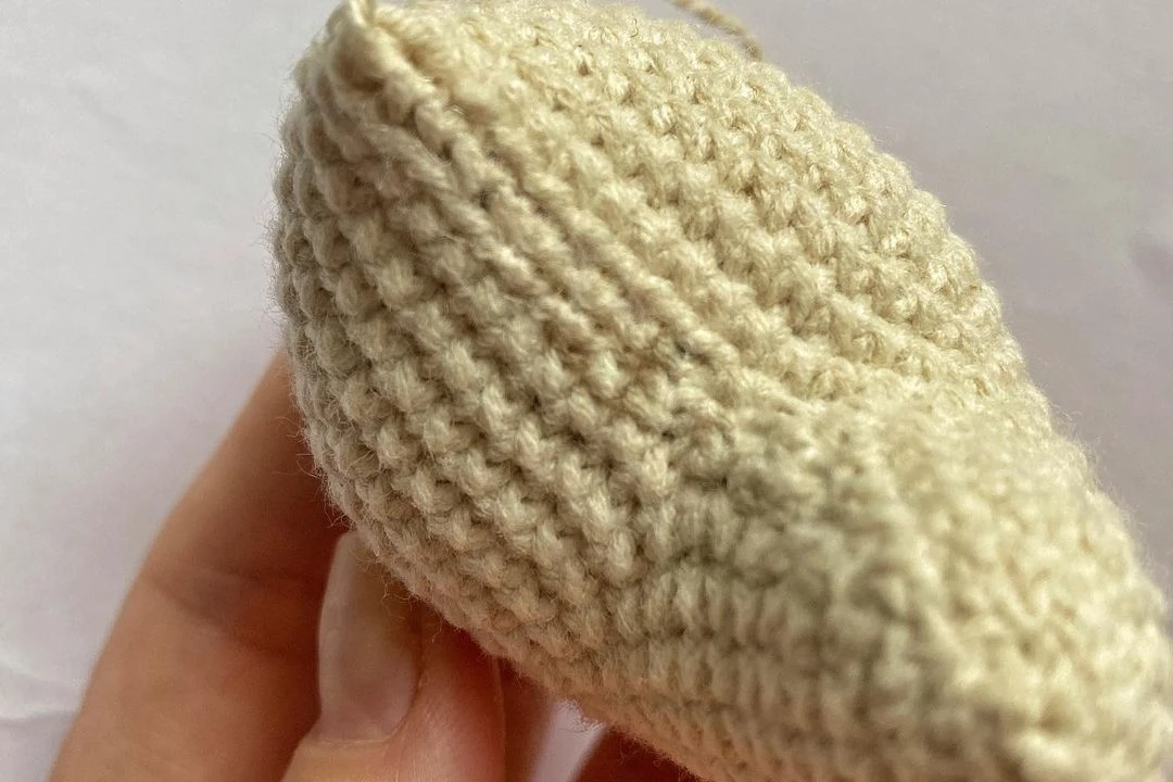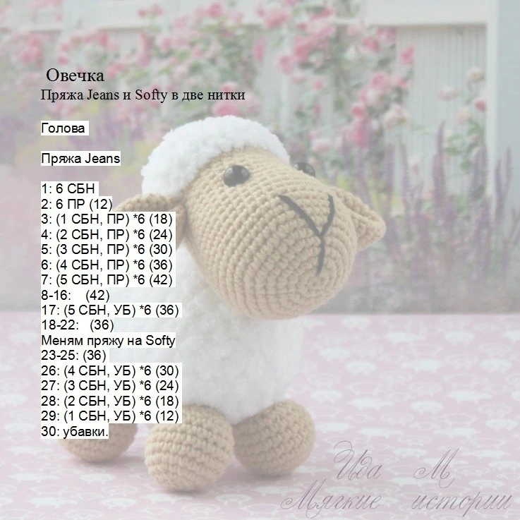 Если тело вашей овечки получается такого же размера, что и голова, а не примерно в два раза больше, то продолжайте делать прибавки примерно до 36 петель в ряду. И кол-во рядов увеличивайте до примерно +4 ряда. У каждого будет всё индивидуально в зависимости от выбранной пряжи и плотности вязания.