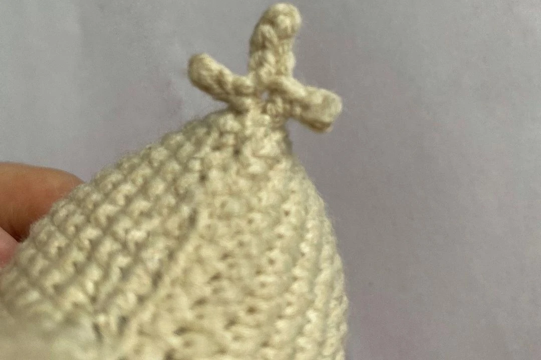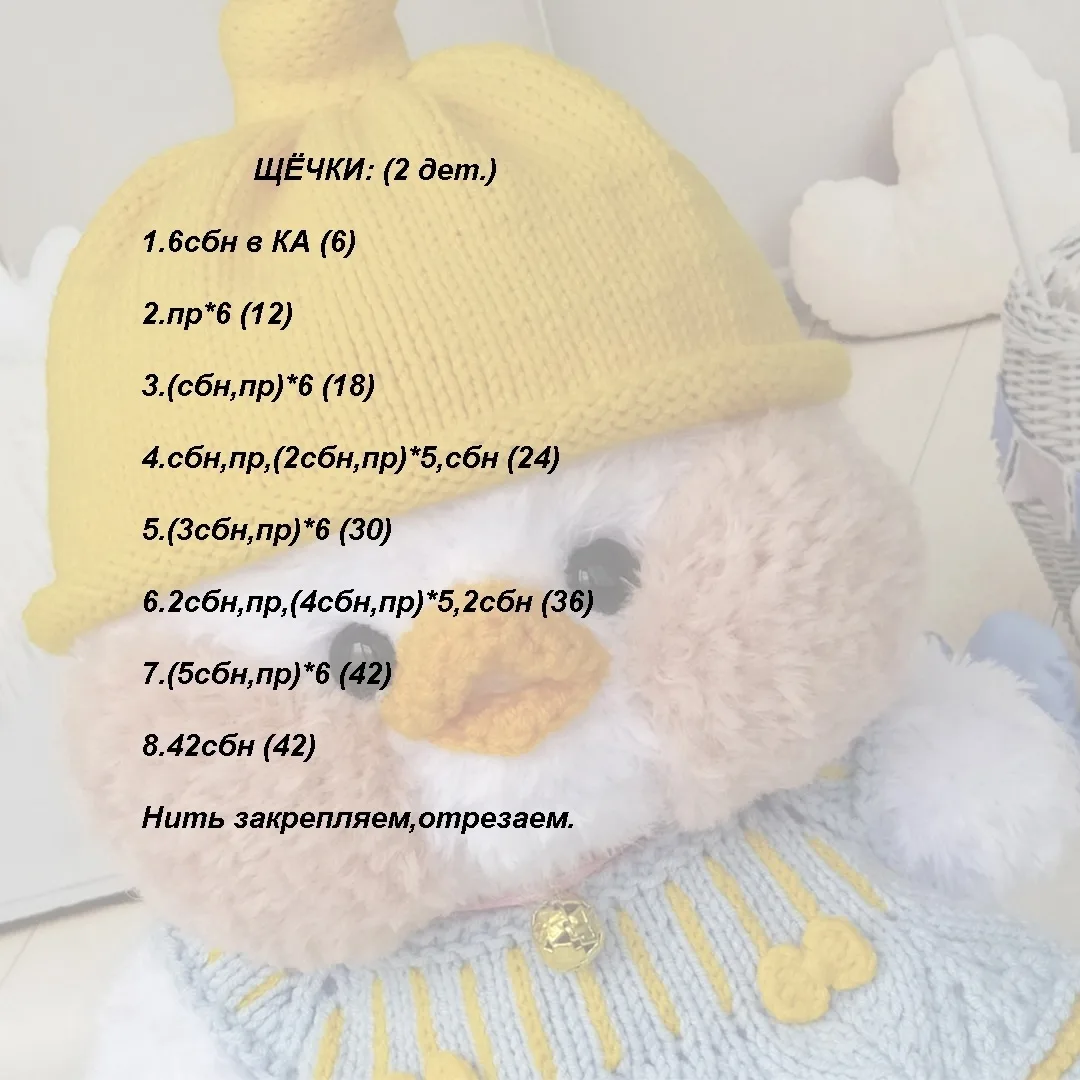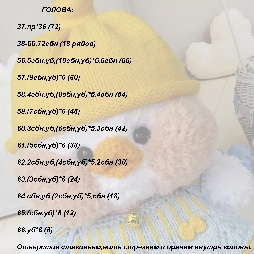 Визуально распределите хохолок так, чтобы он располагался по центру головы курочки, соответствуя схеме: сс, 3вп, сс, 4вп, сс, 3вп, сс.
