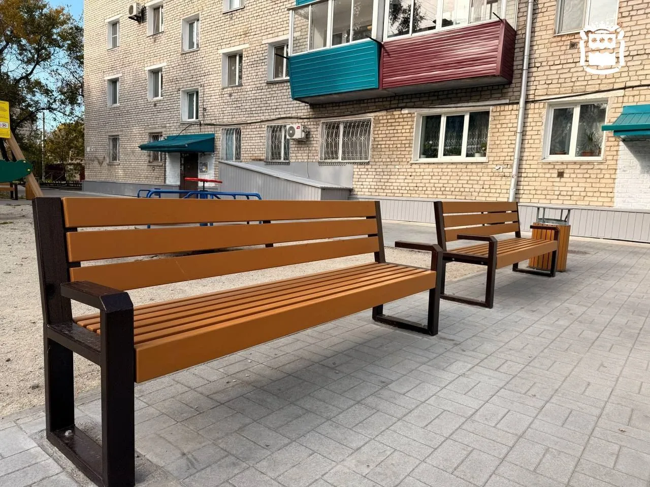 💬 «Территория двора выложена тротуарной плиткой. Во дворе установлены малые архитектурные формы – современные скамейки и урны», - рассказала специалист Управления ЖКХ администрации города Белогорска Анна Шапилова.