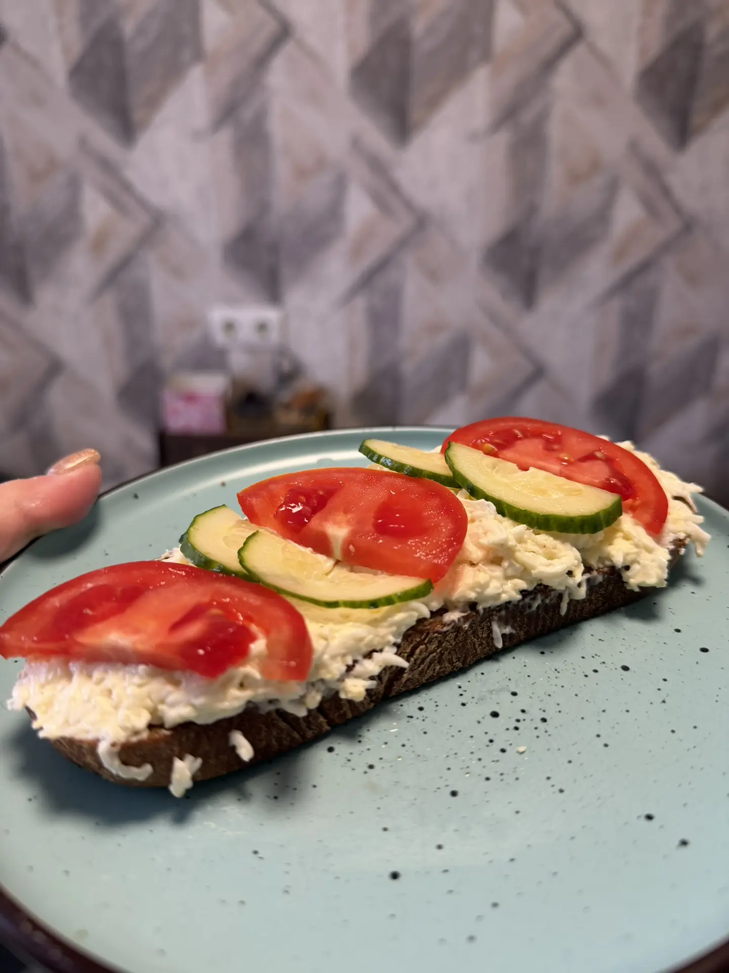 Все это не хлебушек и сверху помидор и огурец 🥒