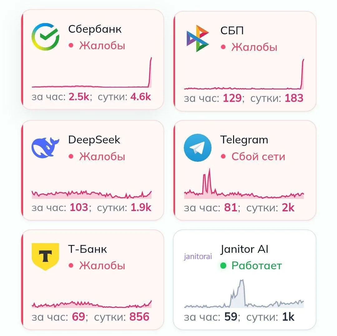 У банков Сбер и Т-Банк, а также у сервиса СБП масштабный сбой.