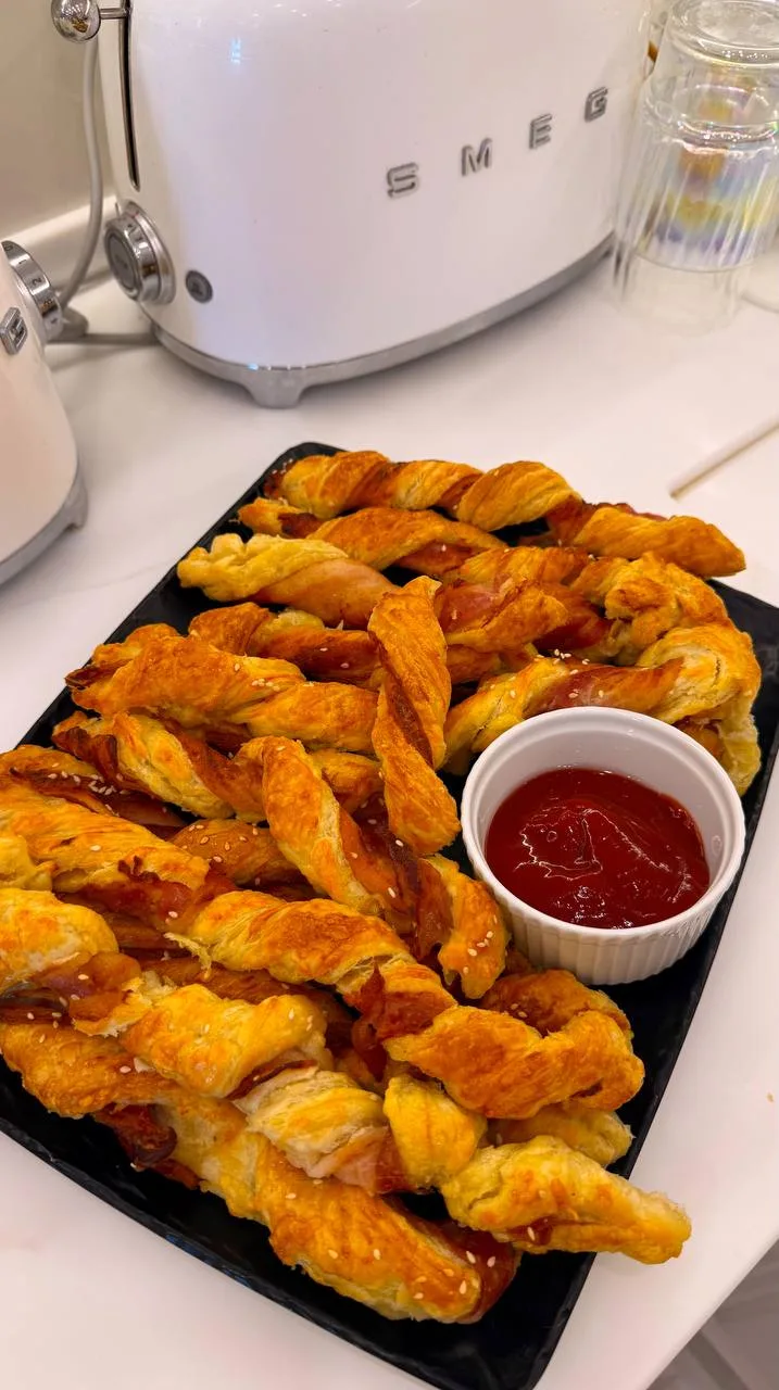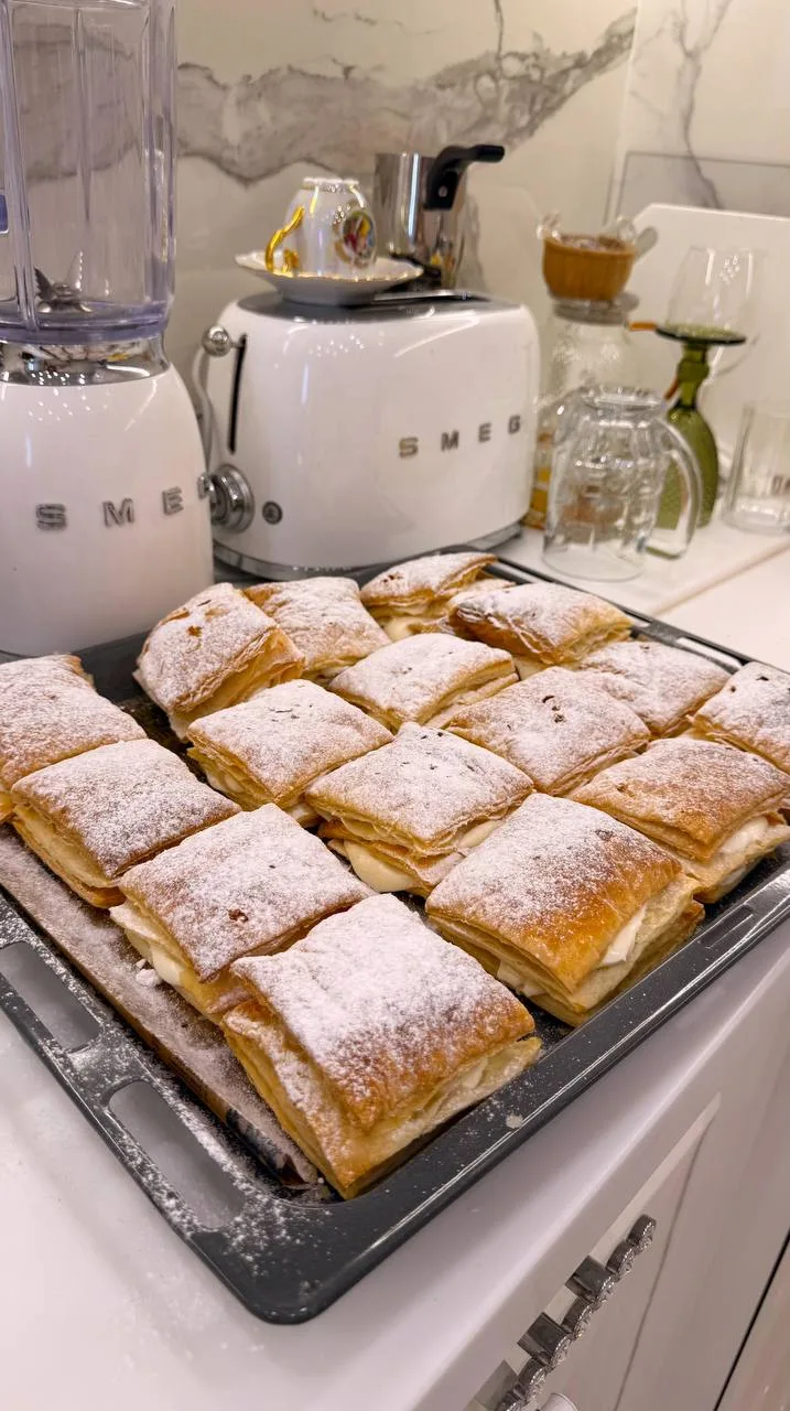 Как готовлю: 1️⃣ Тесто размораживаю полностью, не раскатываю — сразу нарезаю на квадраты. (Если резать полузамёрзшим, слои могут раскрыться хуже.)